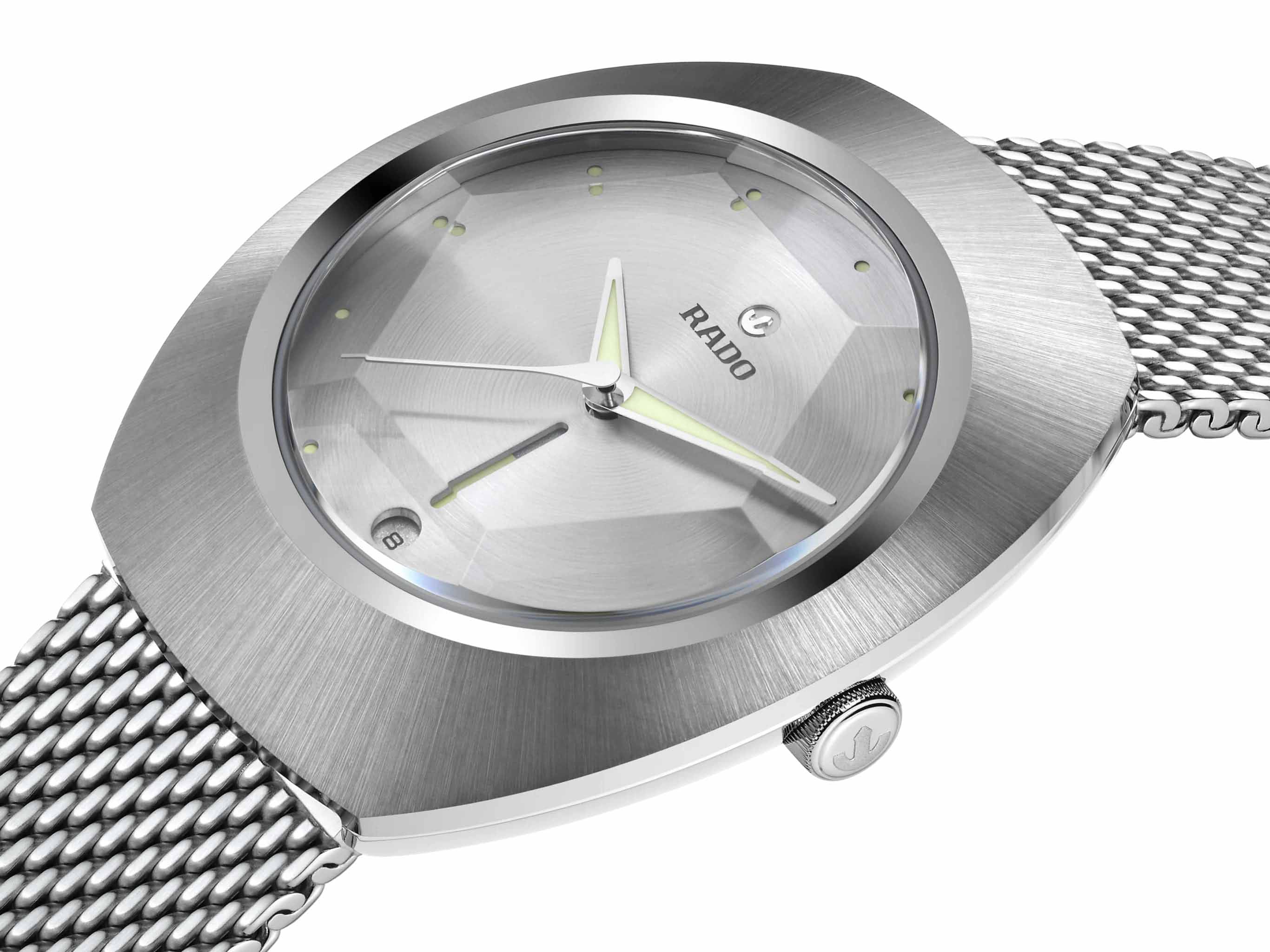 Оригинальное 60-летнее юбилейное издание DiaStar было создано в сотрудничестве со швейцарским дизайнером Альфредо Хаберли. Обрамленные радиально-матовой кифой Ceramos™CeramosМатериал являет собой инновационное сочетание высокотехнологичной керамики и сплава металла. Он объединяет керамическую устойчивость к царапинам и металлический роскошный блеск. с полированными углами и детализацией, установленной поверх соответствующего монохромного корпуса из нержавеющей стали, часы также имеют сапфировое стеклоСапфировое стеклоПрочный и надёжный материал из кристалла сапфира синтетического происхождения, характеризующийся особой твёрдостью и устойчивостью к царапинам и повреждениям. с шестиугольными гранями, чтобы отметить шесть десятилетий с момента появления оригинальных часов. Корпус и циферблат выполнены в монохроматической цветовой гамме. На стрелках и часовых метках покрытие SuperLumiNova®. Внутри автоматический механизм Rado R764 с запасом хода 80 часов обеспечивает надежный и точный хронометраж. Часы имеют диаметр 38 мм и водонепроницаемость до 100 м. Это означает надежность, непреходящую красоту и бесконечное удовольствие от ношения. Это издание поставляется в стильном сером чехле с плетеным браслетом из нержавеющей стали «Milanese», а также в пятнистом сером текстильном ремешке: система EasyClip позволяет легко заменять браслеты.