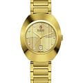 Женские механические часы с автоподзаводом Rado из коллекции Diastar Original — это икона швейцарского мастерства и инноваций. Корпус диаметром 30 мм и толщиной 11 мм выполнен из нержавеющей стали с PVD-покрытиемPVDУльтратонкое покрытие наносится в технике вакуумного напыления, сочетает в себе нитрид титана особой прочности со слоем золота или оксида хрома. Несёт в себе декоративную или защитную функцию. жёлтого золота. БезельБезельВнешний ободок, закрепляющий стекло. В спортивных часах так называется поворотное кольцо с делениями на циферблате, выполняет роль таймера – замеряет отрезки времени на шкале. Неподвижный безель – элемент декора. Однонаправленно вращающийся безель на дайверских часах позволяет фиксировать моменты погружения и выныривания на поверхность. изготовлен из Ceramos™CeramosМатериал являет собой инновационное сочетание высокотехнологичной керамики и сплава металла. Он объединяет керамическую устойчивость к царапинам и металлический роскошный блеск. с покрытием жёлтого золота. Циферблат жёлтого цвета с двунаправленной шлифовкой украшен 11 бриллиантами и центральным подвижным якорем — фирменным элементом дизайна. Циферблат защищён фасетированным сапфировым стекломСапфировое стеклоПрочный и надёжный материал из кристалла сапфира синтетического происхождения, характеризующийся особой твёрдостью и устойчивостью к царапинам и повреждениям. с антибликовым покрытиемАнтибликовое покрытиеСлой оксида металла в 0,13-0,3 микрон, благодаря которому стекло часов не бликует и не отражает свет. Антибликовое покрытие уменьшает отражение света в 10 раз, обеспечивая отличную читаемость показателей циферблата. на внутренней стороне. Стрелки золотистого цвета с люминесцентным покрытиемЛюминесцентное покрытиеПозволяет считывать показания времени в темноте. Производители наносят на стрелки, часовые индексы, безель или поверхность циферблата светонакопительный состав, дающий холодное свечение. Super-Luminova®, обеспечивающим отличную читаемость в любых условиях. Механизм — автоматический калибр R586 с пружиной Nivachron™Nivachron™Специально разработанный инновационный сплав Nivachron™ повышает устойчивость часов к воздействию магнитных полей., отрегулированный в пяти положениях, с запасом хода 48 часов. Окошко даты расположено в положении 6 часов. Часы оснащены стальным браслетом с PVD-покрытиемPVDУльтратонкое покрытие наносится в технике вакуумного напыления, сочетает в себе нитрид титана особой прочности со слоем золота или оксида хрома. Несёт в себе декоративную или защитную функцию. жёлтого золота и застёжкой «бабочка» с кнопкамиЗастёжка "бабочка"Такой вид застёжки дополняется предохранителями, помогающими избежать случайного раскрытия браслета. Обладают изящным исполнением. из стали с PVD-покрытиемPVDУльтратонкое покрытие наносится в технике вакуумного напыления, сочетает в себе нитрид титана особой прочности со слоем золота или оксида хрома. Несёт в себе декоративную или защитную функцию.. Водонепроницаемость 100 м позволяет использовать часы для плавания. Идеальный выбор для тех, кто ценит роскошь, точность и смелый дизайн.