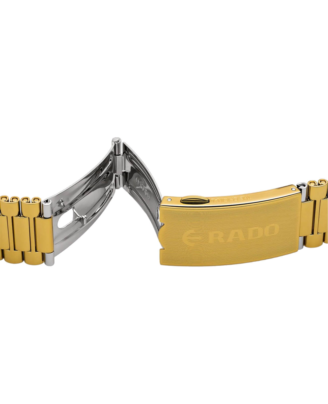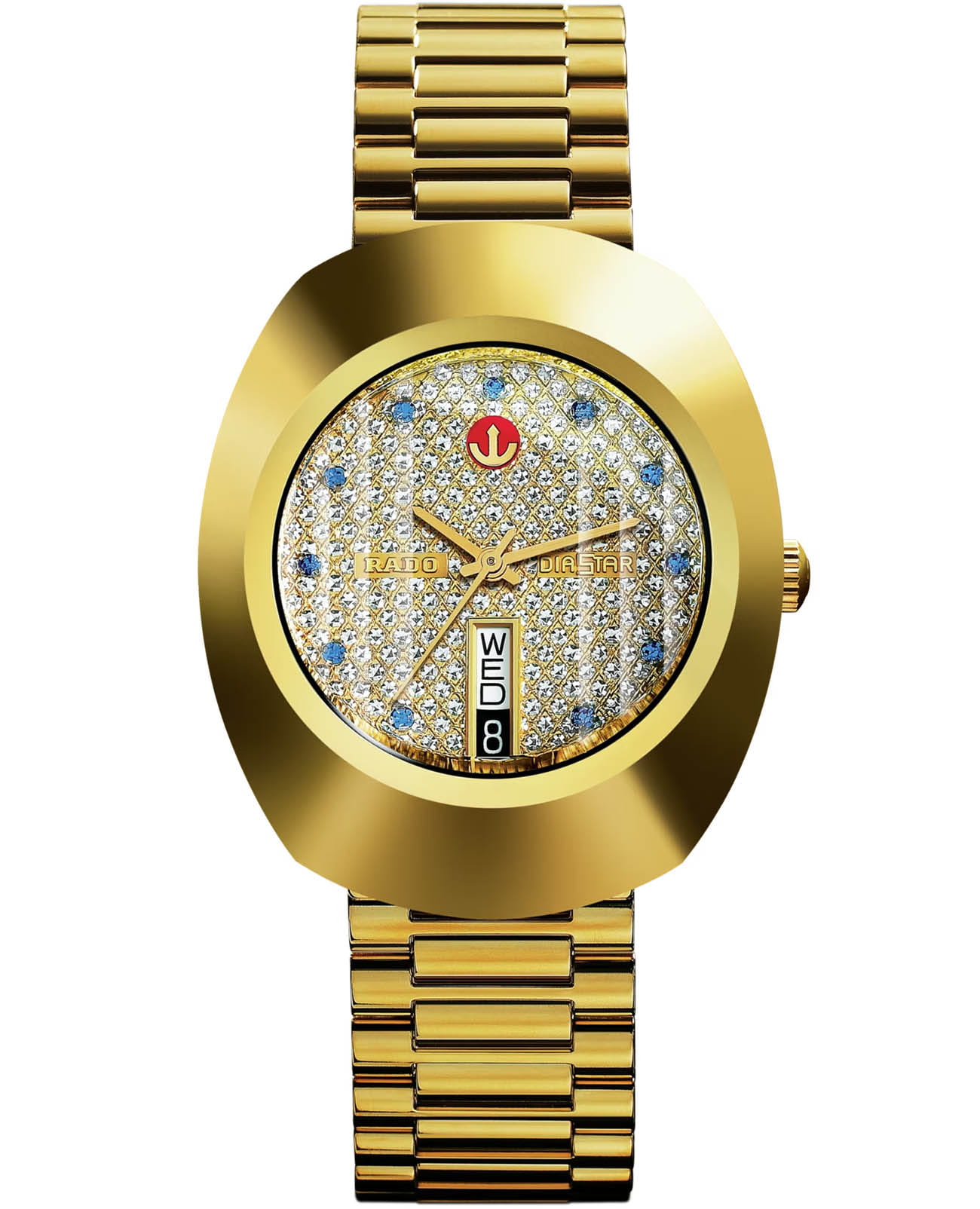 Мужские часы Rado The Original Automatic R12413313 с надёжным автоматическим механизмом. Корпус и браслет часов выполнены из нержавеющей стали c PVD-покрытиемPVDУльтратонкое покрытие наносится в технике вакуумного напыления, сочетает в себе нитрид титана особой прочности со слоем золота или оксида хрома. Несёт в себе декоративную или защитную функцию.. Стальной браслет на раскладной застёжкеРаскладная застёжкаТакой тип застёжки используется только на браслетах из металла. Она никогда не раскрывается полностью, происходит разделение на 2 и более частей. Раскладывающая застёжка снизит вероятность потери часов к минимуму.. Класс водозащиты: 30 метров, позволит защитить корпус от случайных брызг или капель дождя. Циферблат инкрустирован сапфирами. Окошко даты и дня недели находится в положении 6 часов.