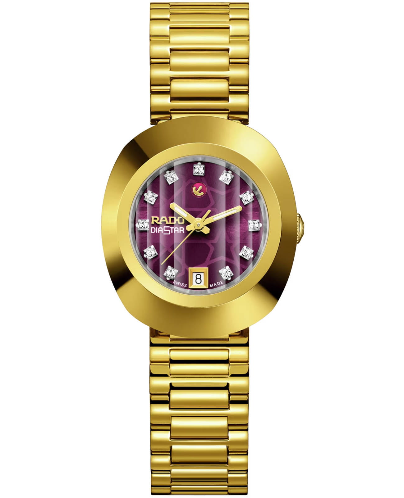 Женские часы Rado The Original Automatic R12416573 с надёжным автоматическим механизмом. Корпус и браслет часов выполнены из нержавеющей стали c PVD-покрытиемPVDУльтратонкое покрытие наносится в технике вакуумного напыления, сочетает в себе нитрид титана особой прочности со слоем золота или оксида хрома. Несёт в себе декоративную или защитную функцию.. Стальной браслет на раскладной застёжкеРаскладная застёжкаТакой тип застёжки используется только на браслетах из металла. Она никогда не раскрывается полностью, происходит разделение на 2 и более частей. Раскладывающая застёжка снизит вероятность потери часов к минимуму.. Класс водозащиты: 30 метров, позволит защитить корпус от случайных брызг или капель дождя. Окошко даты находится в положении 6 часов. Циферблат инкрустирован сапфирами. Стрелки и метки с люминесцентным покрытиемЛюминесцентное покрытиеПозволяет считывать показания времени в темноте. Производители наносят на стрелки, часовые индексы, безель или поверхность циферблата светонакопительный состав, дающий холодное свечение..