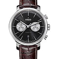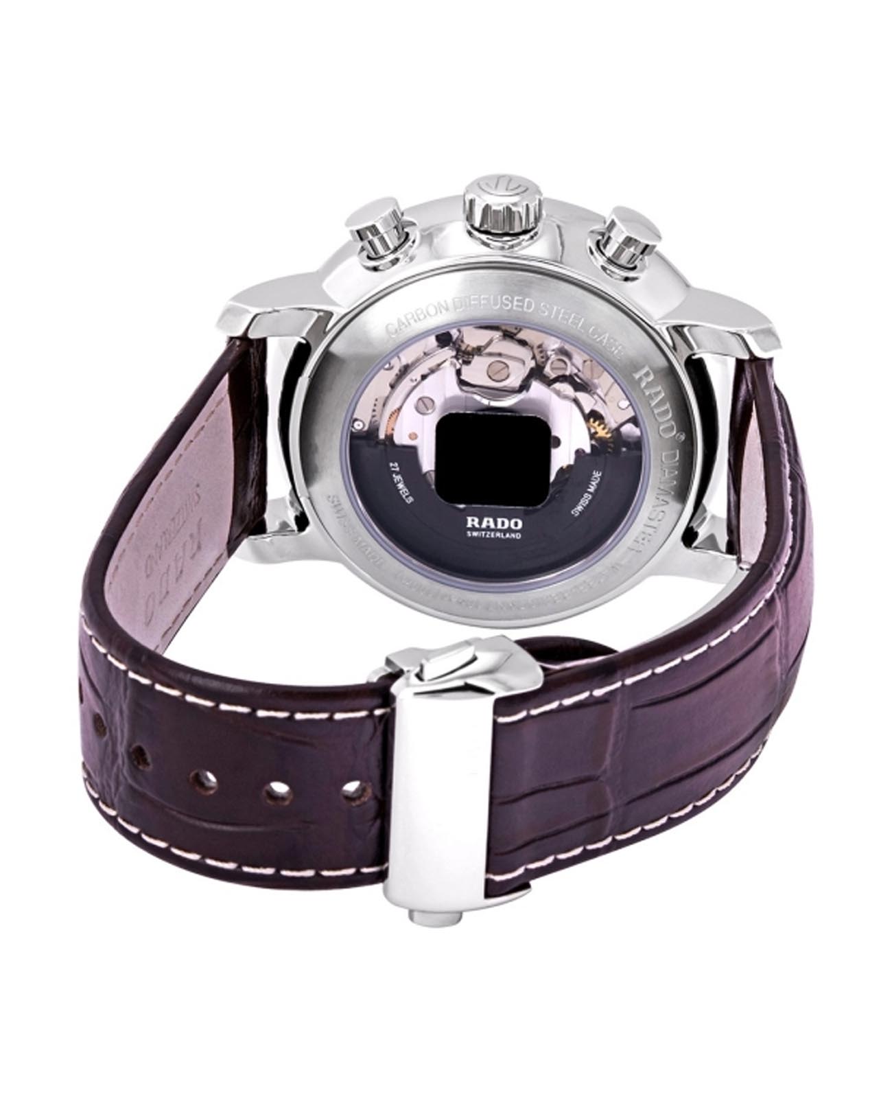 Мужские механические швейцарские часы-хронографХронографФункция позволяет измерять отрезки времени с особой точностью: часы, минуты, секунды. Верным признаком хронографа является наличие на циферблате 3 дополнительных окошек-счётчиков. Rado Rado D-Star R14070176. Сапфировое стеклоСапфировое стеклоПрочный и надёжный материал из кристалла сапфира синтетического происхождения, характеризующийся особой твёрдостью и устойчивостью к царапинам и повреждениям. устойчивое к мелким механическим повреждениям. Корпус часов изготовлен из высокотехнологичной керамикиВысокотехнологичная керамикаИнновационный запатентованный Rado материал с гладкой или матовой поверхностью. Керамика за счёт кристаллической структуры обладает повышенной устойчивостью от возникновения царапин. Материал способен принимать температуру тела человека, обеспечивая невероятный комфорт при ношении.. Окошко даты находится в положении 6 часов.  Класс водозащиты: 100 метров, позволит плавать, нырять и заниматься другими водными видами спорта. Кожаный ремешок на раскладной застёжкеРаскладная застёжкаТакой тип застёжки используется только на браслетах из металла. Она никогда не раскрывается полностью, происходит разделение на 2 и более частей. Раскладывающая застёжка снизит вероятность потери часов к минимуму..