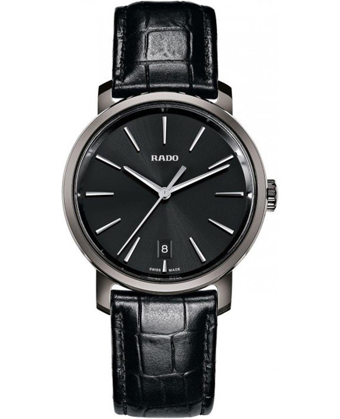 Мужские швейцарские часы Rado DiaMaster R14072175. Корпус часов изготовлен из высокотехнологичной плазменной керамикиВысокотехнологичная плазменная керамикаИнновационный материал, технология запатентована. Выплавление керамики осуществляется в печи при 20 000 °C, белоснежный материал под воздействием ультравысокой температуры приобретает уникальный блеск, присущий металлам.. Браслет из натуральной кожи  с раскладной застёжкойРаскладная застёжкаТакой тип застёжки используется только на браслетах из металла. Она никогда не раскрывается полностью, происходит разделение на 2 и более частей. Раскладывающая застёжка снизит вероятность потери часов к минимуму. удобно сидит на запястье. Сапфировое стеклоСапфировое стеклоПрочный и надёжный материал из кристалла сапфира синтетического происхождения, характеризующийся особой твёрдостью и устойчивостью к царапинам и повреждениям. устойчивое к мелким механическим повреждениям. Класс водозащиты: 100 метров, позволит плавать, нырять и заниматься другими водными видами спорта. Отображение даты в положении «6 часов».
