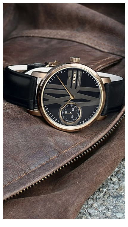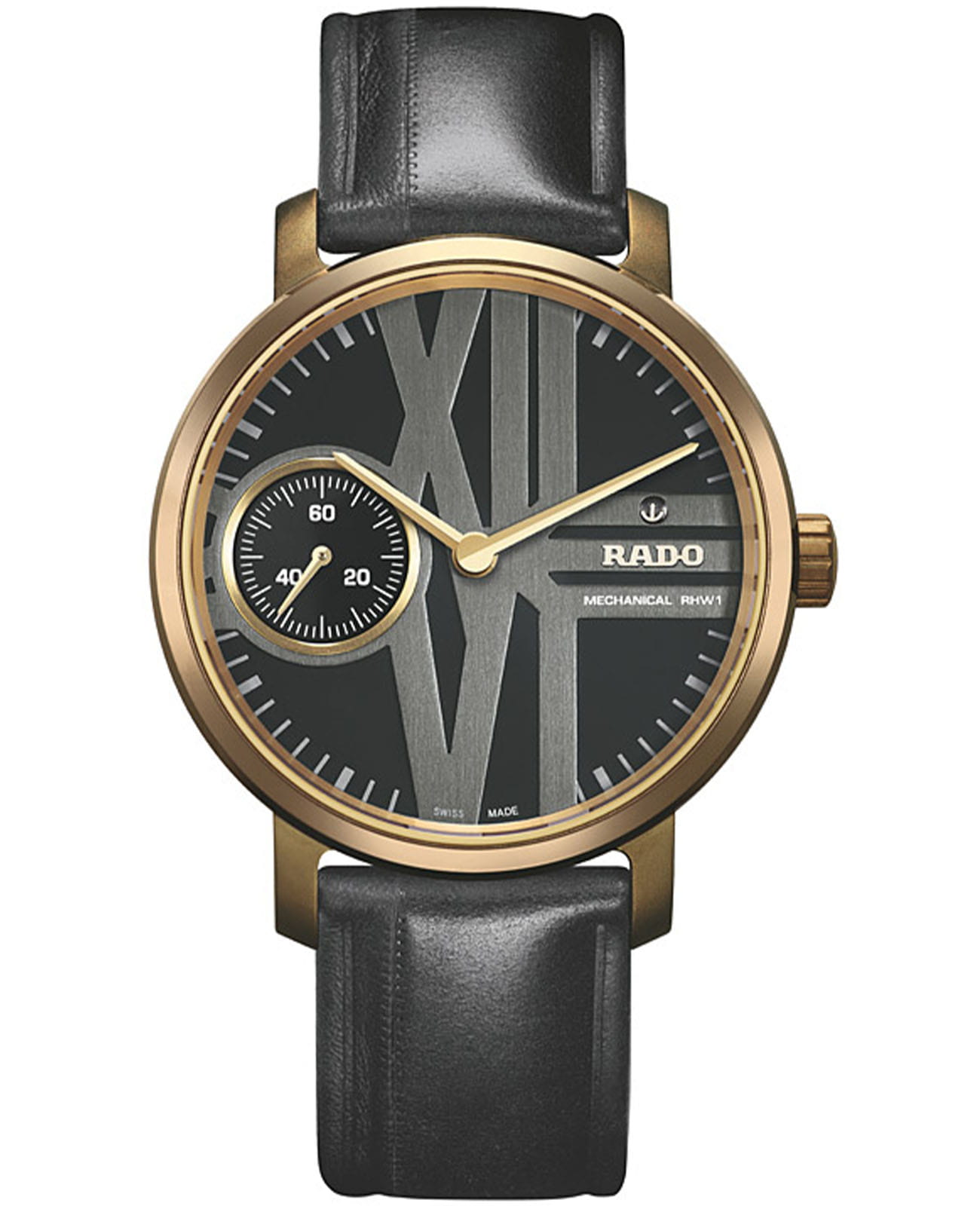 Мужские механические швейцарские часы с автоподзаводом Rado DiaMaster Automatic R14586155. Сапфировое стеклоСапфировое стеклоПрочный и надёжный материал из кристалла сапфира синтетического происхождения, характеризующийся особой твёрдостью и устойчивостью к царапинам и повреждениям. устойчивое к мелким механическим повреждениям. Корпус часов изготовлен из высокотехнологичной керамикиВысокотехнологичная керамикаИнновационный запатентованный Rado материал с гладкой или матовой поверхностью. Керамика за счёт кристаллической структуры обладает повышенной устойчивостью от возникновения царапин. Материал способен принимать температуру тела человека, обеспечивая невероятный комфорт при ношении. и титана с PVD-покрытиемPVDУльтратонкое покрытие наносится в технике вакуумного напыления, сочетает в себе нитрид титана особой прочности со слоем золота или оксида хрома. Несёт в себе декоративную или защитную функцию.. Циферблат с метками в виде штрихов и крупных римских цифр. Секундная стрелка вынесена на малый циферблат. Класс водозащиты: 100 метров, позволит плавать, нырять и заниматься другими водными видами спорта. Кожаный ремешок с раскладной застёжкойРаскладная застёжкаТакой тип застёжки используется только на браслетах из металла. Она никогда не раскрывается полностью, происходит разделение на 2 и более частей. Раскладывающая застёжка снизит вероятность потери часов к минимуму..