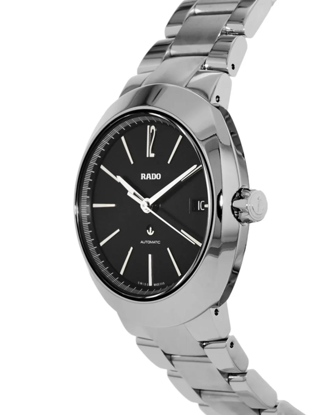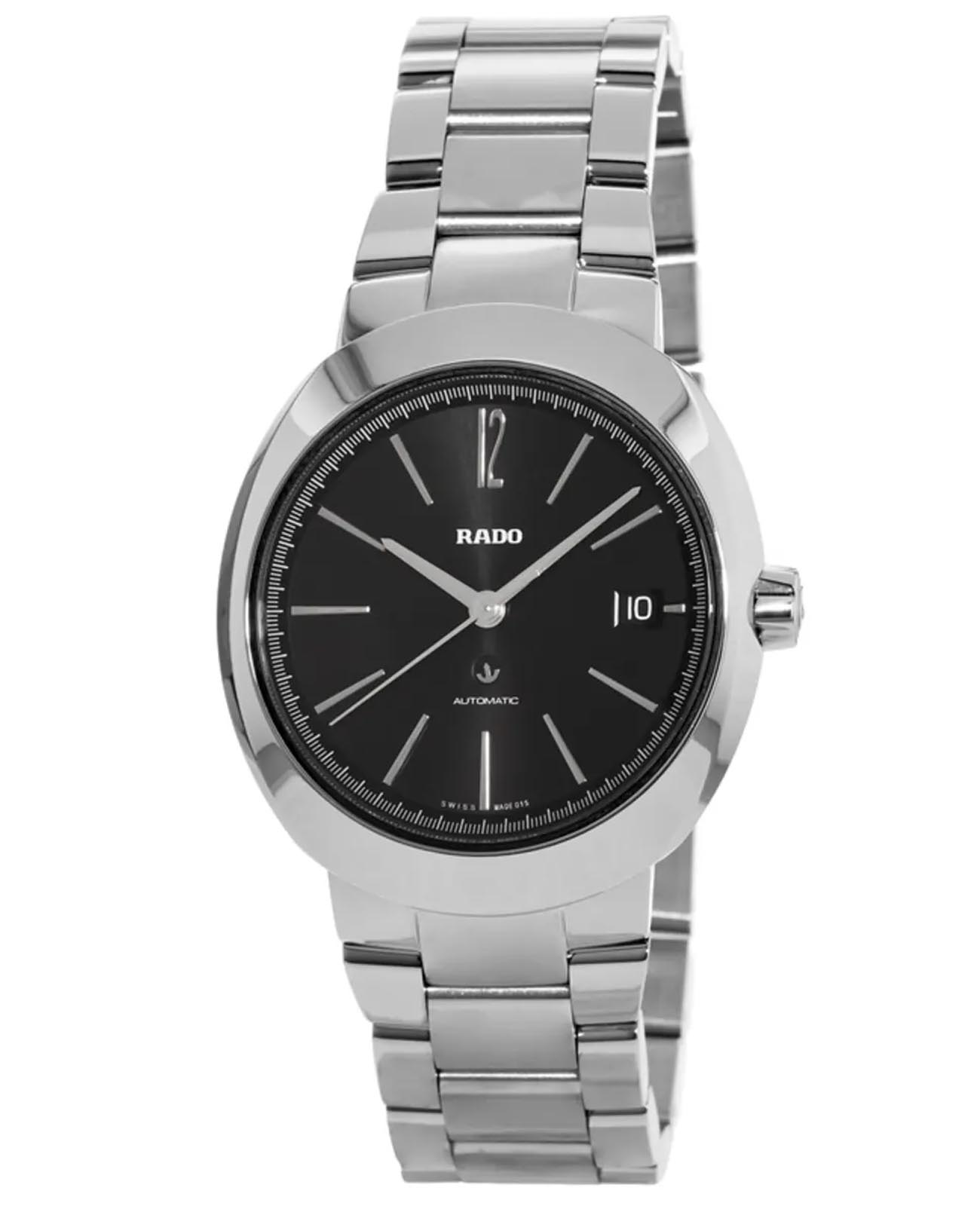 Мужские механические швейцарские часы Rado Rado D-Star R15513153. Сапфировое стеклоСапфировое стеклоПрочный и надёжный материал из кристалла сапфира синтетического происхождения, характеризующийся особой твёрдостью и устойчивостью к царапинам и повреждениям. устойчивое к мелким механическим повреждениям. Корпус часов изготовлен из нержавеющей стали. Окошко даты находится в положении 3 часа. Класс водозащиты: 100 метров, позволит плавать, нырять и заниматься другими водными видами спорта. Браслет из нержавеющей стали на раскладной застёжкеРаскладная застёжкаТакой тип застёжки используется только на браслетах из металла. Она никогда не раскрывается полностью, происходит разделение на 2 и более частей. Раскладывающая застёжка снизит вероятность потери часов к минимуму..