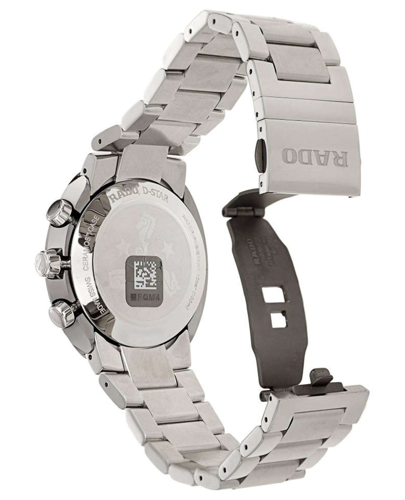 Мужские швейцарские часы-хронографХронографФункция позволяет измерять отрезки времени с особой точностью: часы, минуты, секунды. Верным признаком хронографа является наличие на циферблате 3 дополнительных окошек-счётчиков. Rado D-Star Chronograph R15937113. Сапфировое стеклоСапфировое стеклоПрочный и надёжный материал из кристалла сапфира синтетического происхождения, характеризующийся особой твёрдостью и устойчивостью к царапинам и повреждениям. устойчивое к мелким механическим повреждениям. Корпус часов изготовлен из CeramosCeramosМатериал являет собой инновационное сочетание высокотехнологичной керамики и сплава металла. Он объединяет керамическую устойчивость к царапинам и металлический роскошный блеск. . Класс водозащиты: 100 метров, позволит плавать, нырять и заниматься другими водными видами спорт. Браслет из нержавеющей стали на раскладной застёжкеРаскладная застёжкаТакой тип застёжки используется только на браслетах из металла. Она никогда не раскрывается полностью, происходит разделение на 2 и более частей. Раскладывающая застёжка снизит вероятность потери часов к минимуму..