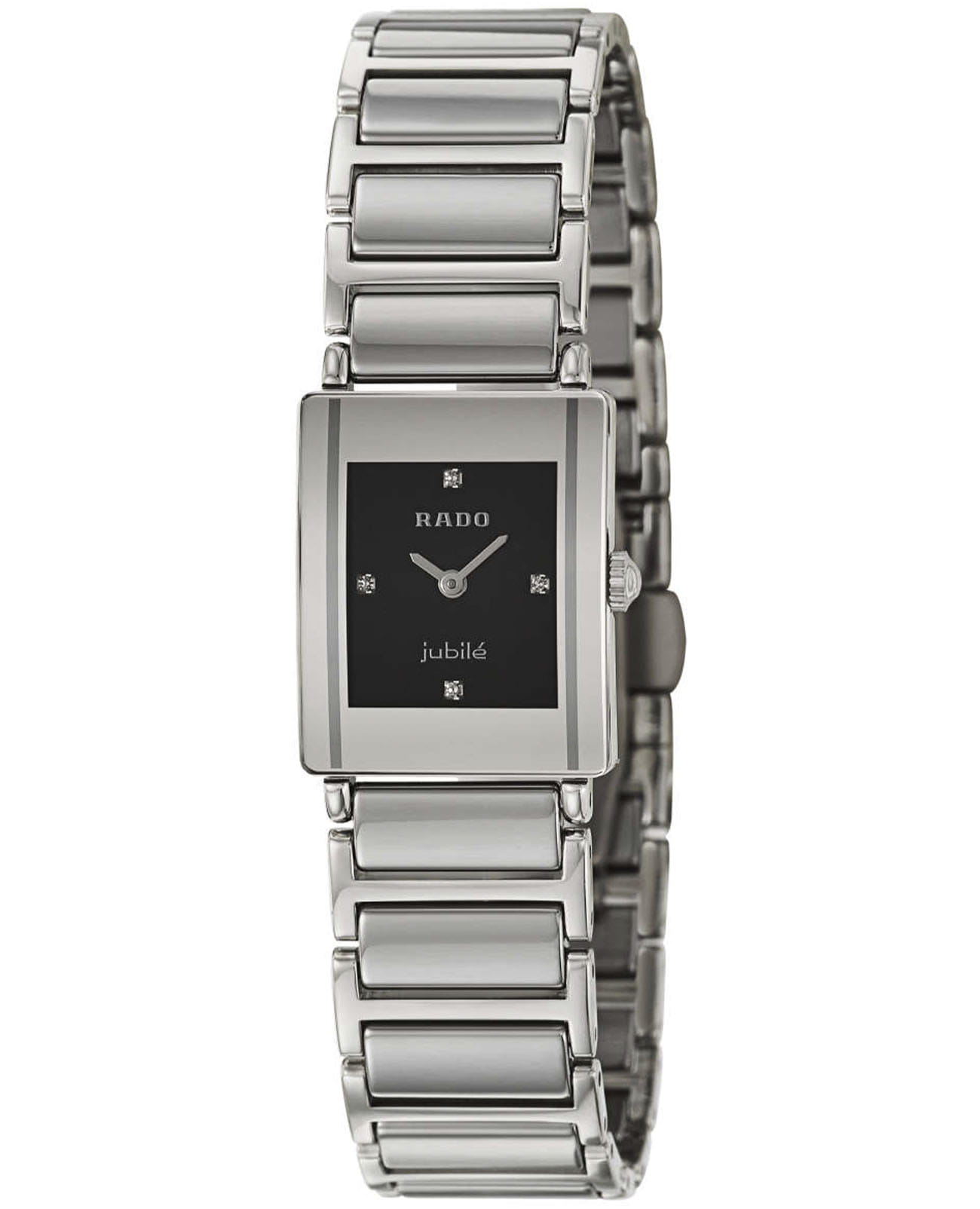 Лаконичный и сдержанный аксессуар точно понравится приверженцам классического стиля, минималистичный циферблат отличается удлинёнными часовыми индексами. Оригинально смотрится сочетание нержавеющей стали 316L и высокотехнологичной керамикиВысокотехнологичная керамикаИнновационный запатентованный Rado материал с гладкой или матовой поверхностью. Керамика за счёт кристаллической структуры обладает повышенной устойчивостью от возникновения царапин. Материал способен принимать температуру тела человека, обеспечивая невероятный комфорт при ношении.. Браслет на раскладной застёжкеРаскладная застёжкаТакой тип застёжки используется только на браслетах из металла. Она никогда не раскрывается полностью, происходит разделение на 2 и более частей. Раскладывающая застёжка снизит вероятность потери часов к минимуму.. Сапфировое стеклоСапфировое стеклоПрочный и надёжный материал из кристалла сапфира синтетического происхождения, характеризующийся особой твёрдостью и устойчивостью к царапинам и повреждениям.. Водозащита 30 метров, позволит защитить корпус от случайных брызг или капель дождя. Циферблат декорирован бриллиантами.