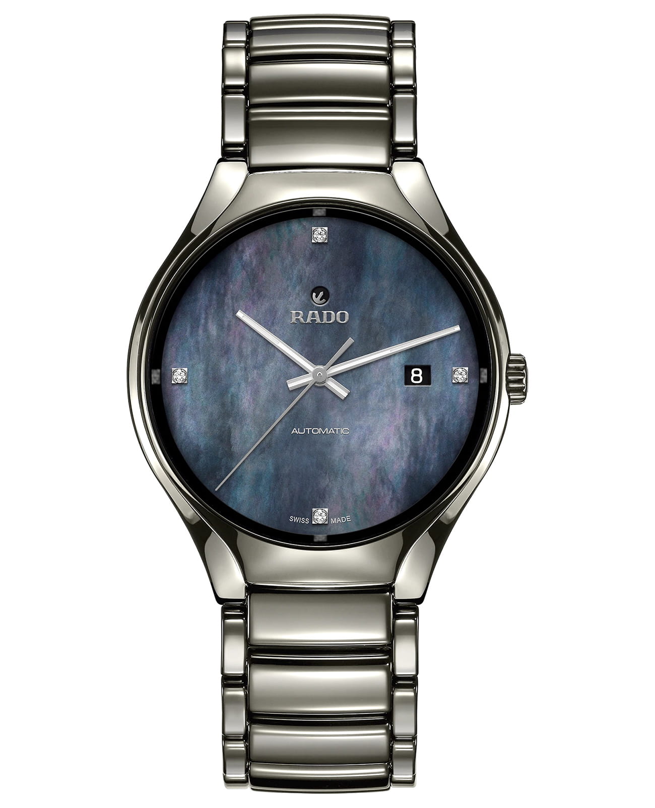 Стильный аксессуар будет настоящим украшением вашего запястья, строгий чёрный цвет позволяет носить часы в сочетании с любой одеждой. Вместо часовых индексов использовано 12 бриллиантов в 0,085 карат, роскошное исполнение идеально подойдет для привлечения внимания к имиджу элегантной бизнес-леди. Корпус выполнен из сочетания нержавеющей стали 316L и высокотехнологичной керамикиВысокотехнологичная керамикаИнновационный запатентованный Rado материал с гладкой или матовой поверхностью. Керамика за счёт кристаллической структуры обладает повышенной устойчивостью от возникновения царапин. Материал способен принимать температуру тела человека, обеспечивая невероятный комфорт при ношении., что позволяет получить дополнительную устойчивость к царапинам.Сапфировое стекло. Износоустойчивое PVD-покрытиеPVDУльтратонкое покрытие наносится в технике вакуумного напыления, сочетает в себе нитрид титана особой прочности со слоем золота или оксида хрома. Несёт в себе декоративную или защитную функцию.. Водонепроницаемость 30 метров.. Отображение даты. Диаметр корпуса: 40 мм.