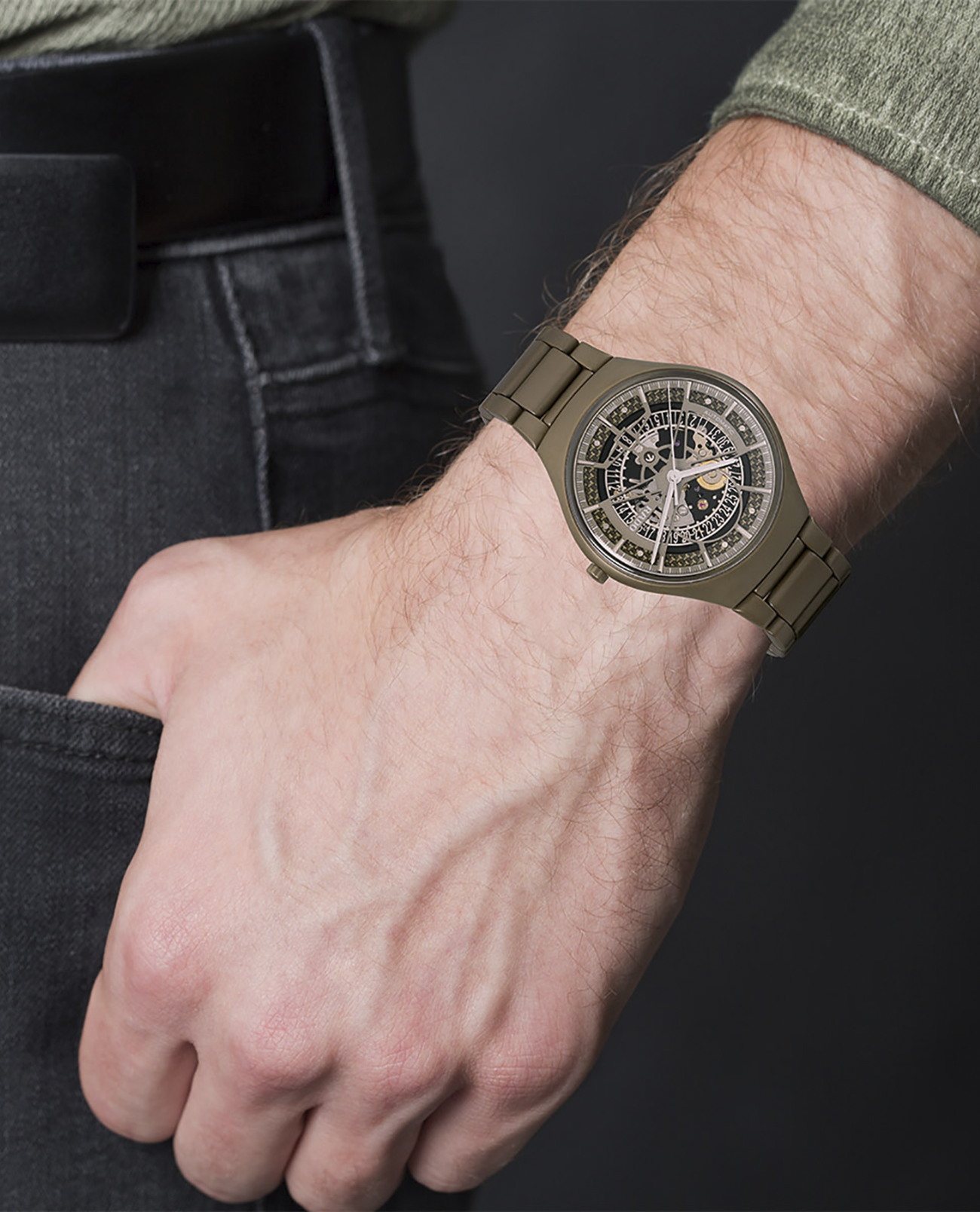 Стильная модель премиального сегмента привлекает изогнутым силуэтом, что достигается за счёт моноблочной конструкции корпуса. Прозрачный циферблат не имеет ни одной лишней детали. Наручные часы изготовлены из высокотехнологичной плазменной керамикиВысокотехнологичная плазменная керамикаИнновационный материал, технология запатентована. Выплавление керамики осуществляется в печи при 20 000 °C, белоснежный материал под воздействием ультравысокой температуры приобретает уникальный блеск, присущий металлам., перенимающей температуру тела носителя. Благодаря такой особенности обеспечивается комфорт при ношении. Швейцарский кварцевый калибр ETA 210.001. Сапфировое стекло. Водонепроницаемость 3 бар. . Диаметр корпуса: 40 мм.