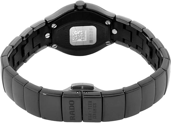 Глянцевый корпус представлен в оригинальном дизайне, его линии плавно перетекают в браслет. Наручные часы выполнены из высокотехнологичной керамикиВысокотехнологичная керамикаИнновационный запатентованный Rado материал с гладкой или матовой поверхностью. Керамика за счёт кристаллической структуры обладает повышенной устойчивостью от возникновения царапин. Материал способен принимать температуру тела человека, обеспечивая невероятный комфорт при ношении., материал не вызывает аллергии и обеспечивает невероятный комфорт при ношении. Сапфировое стеклоСапфировое стеклоПрочный и надёжный материал из кристалла сапфира синтетического происхождения, характеризующийся особой твёрдостью и устойчивостью к царапинам и повреждениям. устойчиво к образованию царапин. Водостойкость 3 бар. Застёжка «бабочка» с кнопкамиЗастёжка "бабочка"Такой вид застёжки дополняется предохранителями, помогающими избежать случайного раскрытия браслета. Обладают изящным исполнением. .