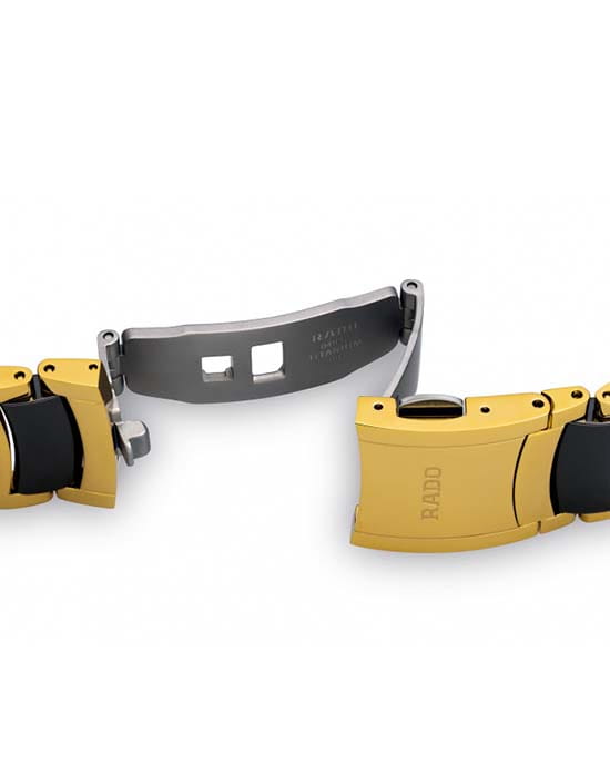 Чёрный циферблат в сочетании с блеском стали 316L с PVD-покрытиемPVDУльтратонкое покрытие наносится в технике вакуумного напыления, сочетает в себе нитрид титана особой прочности со слоем золота или оксида хрома. Несёт в себе декоративную или защитную функцию. и высокотехнологичной керамикиВысокотехнологичная керамикаИнновационный запатентованный Rado материал с гладкой или матовой поверхностью. Керамика за счёт кристаллической структуры обладает повышенной устойчивостью от возникновения царапин. Материал способен принимать температуру тела человека, обеспечивая невероятный комфорт при ношении. станет идеальным дополнением к образу. Часы с автоматической системой завода оснащены высокоточным швейцарским калибром ETA C07.611, резерв хода которого составляет 80 часов. За движением деталей механизма можно следить благодаря прозрачной задней крышке. Сапфировое стекло. Водонепроницаемость 30 метров. . Отображение числа. Диаметр корпуса: 38 мм.