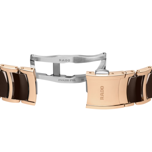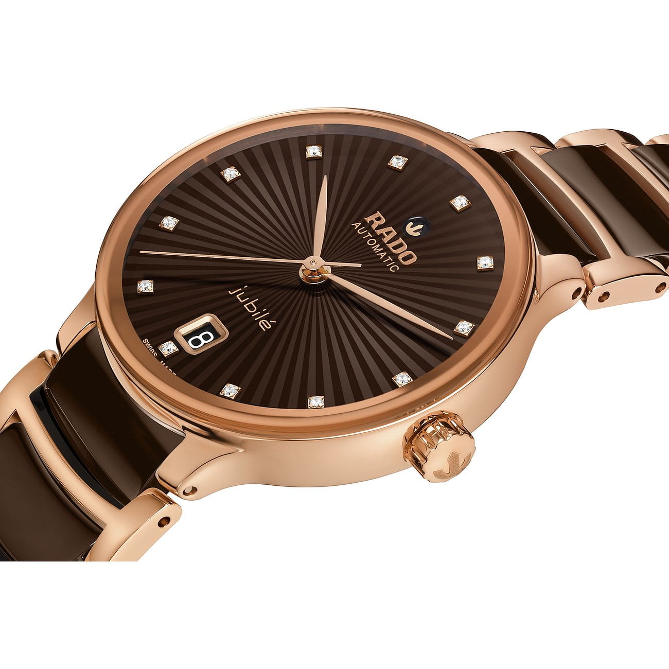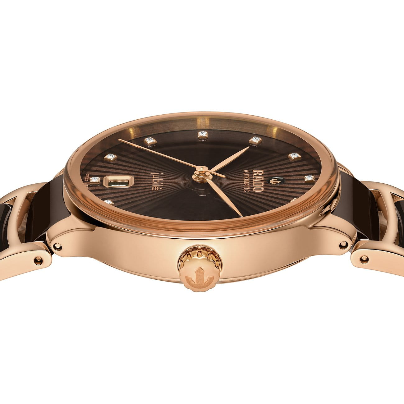 Наручные часы премиальной категории объединяют безупречность стиля и высокую точность хода, позволяя чувствовать себя на высоте в любой ситуации. Привлекательно выглядит сочетание стали с PVD-покрытиемPVDУльтратонкое покрытие наносится в технике вакуумного напыления, сочетает в себе нитрид титана особой прочности со слоем золота или оксида хрома. Несёт в себе декоративную или защитную функцию. и высокотехнологичной керамикиВысокотехнологичная керамикаИнновационный запатентованный Rado материал с гладкой или матовой поверхностью. Керамика за счёт кристаллической структуры обладает повышенной устойчивостью от возникновения царапин. Материал способен принимать температуру тела человека, обеспечивая невероятный комфорт при ношении., такое решение нашло воплощение в браслете. Водонепроницаемость, 50 метров, позволит защитить корпус от случайных брызг или капель дождя. Модель оснащена автоматическим механизмом сохраняющим 80-часовой запас хода. Прозрачная задняя крышка. Сапфировое стеклоСапфировое стеклоПрочный и надёжный материал из кристалла сапфира синтетического происхождения, характеризующийся особой твёрдостью и устойчивостью к царапинам и повреждениям.. Индикация числа на 6 часах. Бриллианты, 12шт. Диаметр корпуса: 35 мм.