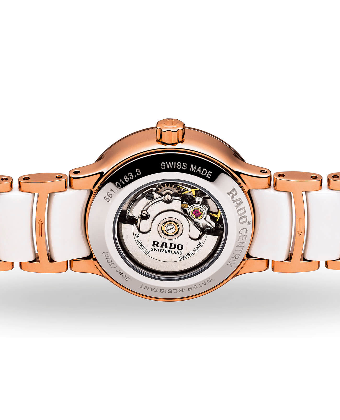 Изысканная модель в минималистичном исполнении грамотно завершит образ. Благодаря роскошному циферблату премиальный аксессуар сразу притягивает внимание, перед блеском 12 бриллиантов в 0,025 карат. Автоподзавод. Швейцарский калибр ETA 2671 имеет запас хода до 38 часов. Скелетонизированная задняя крышка стального корпуса. Сапфировое стекло. Браслет из нержавеющей стали 316L с PVD-покрытиемPVDУльтратонкое покрытие наносится в технике вакуумного напыления, сочетает в себе нитрид титана особой прочности со слоем золота или оксида хрома. Несёт в себе декоративную или защитную функцию. и вставок из высокотехнологичной керамикиВысокотехнологичная керамикаИнновационный запатентованный Rado материал с гладкой или матовой поверхностью. Керамика за счёт кристаллической структуры обладает повышенной устойчивостью от возникновения царапин. Материал способен принимать температуру тела человека, обеспечивая невероятный комфорт при ношении.. Водонепроницаемость 30 метров. Надёжная . Отображение числа. Диаметр корпуса: 28 мм.