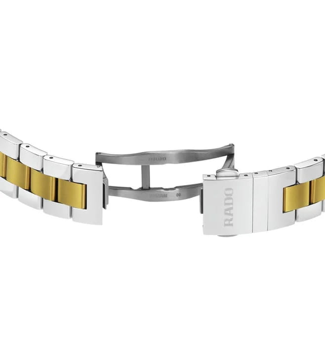 Мужские наручные часы-хронографХронографФункция позволяет измерять отрезки времени с особой точностью: часы, минуты, секунды. Верным признаком хронографа является наличие на циферблате 3 дополнительных окошек-счётчиков. Rado Hyperchrome Chronograph. Корпус часов изготовлен из нержавеющей стали. БезельБезельВнешний ободок, закрепляющий стекло. В спортивных часах так называется поворотное кольцо с делениями на циферблате, выполняет роль таймера – замеряет отрезки времени на шкале. Неподвижный безель – элемент декора. Однонаправленно вращающийся безель на дайверских часах позволяет фиксировать моменты погружения и выныривания на поверхность. из нержавеющей стали с PVD-покрытиемPVDУльтратонкое покрытие наносится в технике вакуумного напыления, сочетает в себе нитрид титана особой прочности со слоем золота или оксида хрома. Несёт в себе декоративную или защитную функцию.. Стальной браслет с частичным PVD-покрытиемPVDУльтратонкое покрытие наносится в технике вакуумного напыления, сочетает в себе нитрид титана особой прочности со слоем золота или оксида хрома. Несёт в себе декоративную или защитную функцию. на застёжке «бабочка» с кнопкамиЗастёжка "бабочка"Такой вид застёжки дополняется предохранителями, помогающими избежать случайного раскрытия браслета. Обладают изящным исполнением. . БезельБезельВнешний ободок, закрепляющий стекло. В спортивных часах так называется поворотное кольцо с делениями на циферблате, выполняет роль таймера – замеряет отрезки времени на шкале. Неподвижный безель – элемент декора. Однонаправленно вращающийся безель на дайверских часах позволяет фиксировать моменты погружения и выныривания на поверхность. со шкалой тахиметраТахиметрРазмеченная шкала, располагается на ободке или безеле часов. Тахиметр позволяет рассчитать скорость на определённом участке пути, расстояние измеряется в километрах или милях.. Окошко даты находится в положении 4 часа. Стрелки и метки с люминесцентным покрытиемЛюминесцентное покрытиеПозволяет считывать показания времени в темноте. Производители наносят на стрелки, часовые индексы, безель или поверхность циферблата светонакопительный состав, дающий холодное свечение.. Сапфировое стеклоСапфировое стеклоПрочный и надёжный материал из кристалла сапфира синтетического происхождения, характеризующийся особой твёрдостью и устойчивостью к царапинам и повреждениям. с антибликовым покрытиемАнтибликовое покрытиеСлой оксида металла в 0,13-0,3 микрон, благодаря которому стекло часов не бликует и не отражает свет. Антибликовое покрытие уменьшает отражение света в 10 раз, обеспечивая отличную читаемость показателей циферблата. устойчивое к мелким механическим повреждениям. Класс водозащиты: 100 метров, позволит плавать, нырять и заниматься другими водными видами спорта.