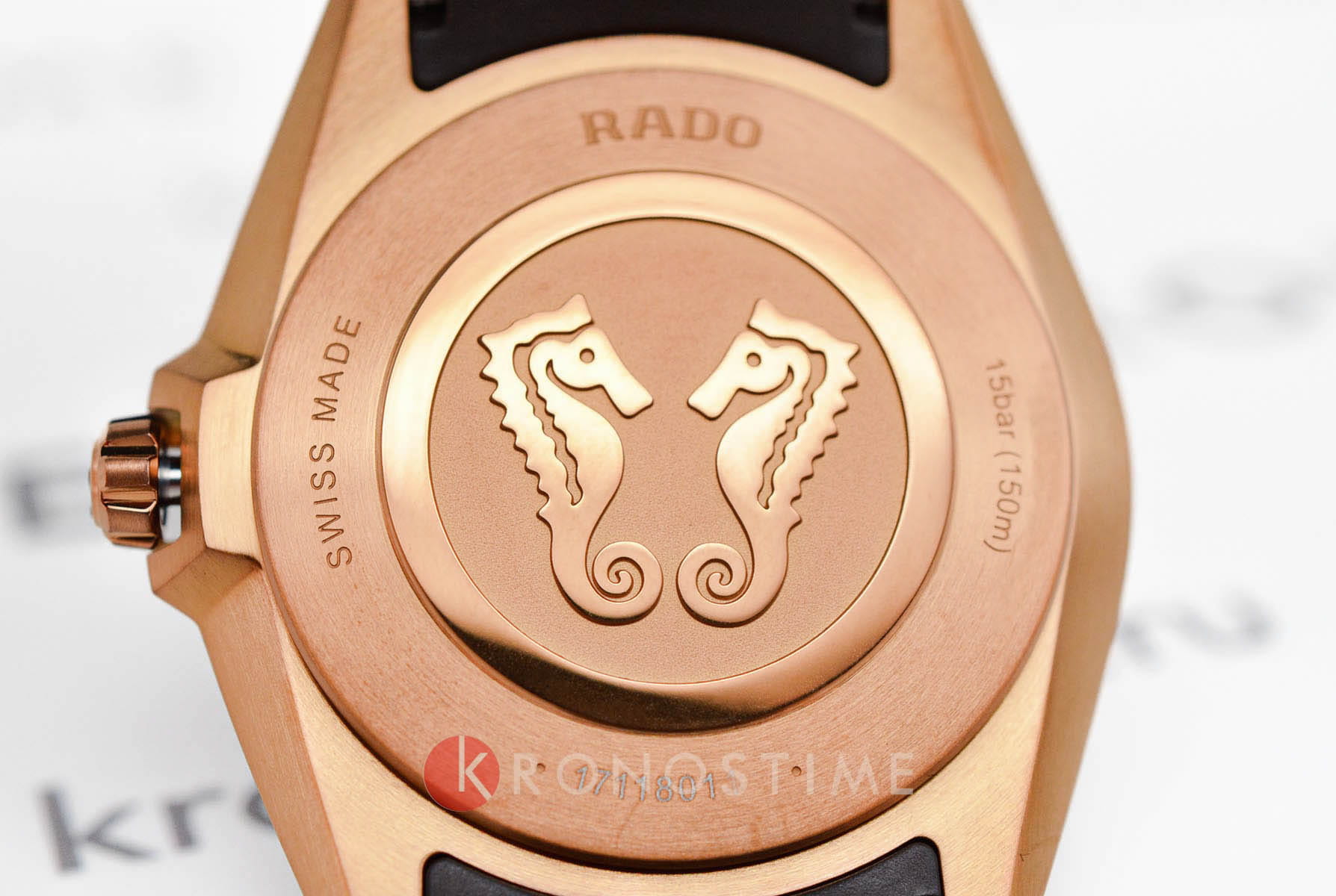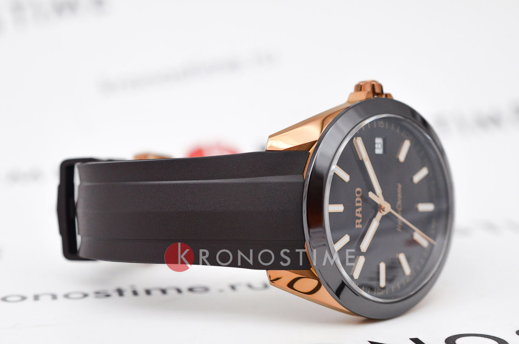 Мужские кварцевые часы Rado HyperChrome — это современное воплощение точности и мастерства материалов. Корпус диаметром 41,5 мм и толщиной 11,7 мм выполнен из нержавеющей стали с PVD-покрытиемPVDУльтратонкое покрытие наносится в технике вакуумного напыления, сочетает в себе нитрид титана особой прочности со слоем золота или оксида хрома. Несёт в себе декоративную или защитную функцию. розового золота, полированной и матовой. БезельБезельВнешний ободок, закрепляющий стекло. В спортивных часах так называется поворотное кольцо с делениями на циферблате, выполняет роль таймера – замеряет отрезки времени на шкале. Неподвижный безель – элемент декора. Однонаправленно вращающийся безель на дайверских часах позволяет фиксировать моменты погружения и выныривания на поверхность. изготовлен из высокотехнологичной керамикиВысокотехнологичная керамикаИнновационный запатентованный Rado материал с гладкой или матовой поверхностью. Керамика за счёт кристаллической структуры обладает повышенной устойчивостью от возникновения царапин. Материал способен принимать температуру тела человека, обеспечивая невероятный комфорт при ношении. коричневого цвета, придающей часам прочность и изысканность. Циферблат коричневого цвета с эффектом «солнечные лучи» оформлен накладными индексами и стрелками розового золота с люминесцентным покрытиемЛюминесцентное покрытиеПозволяет считывать показания времени в темноте. Производители наносят на стрелки, часовые индексы, безель или поверхность циферблата светонакопительный состав, дающий холодное свечение. Super-Luminova®. Особенность подсветки — зелёное свечение метки 12 часов и минутной стрелки, и синее — остальных индексов и часовой стрелки, что обеспечивает интуитивное считывание времени в темноте. Циферблат защищён выпуклым сапфировым стекломСапфировое стеклоПрочный и надёжный материал из кристалла сапфира синтетического происхождения, характеризующийся особой твёрдостью и устойчивостью к царапинам и повреждениям. с антибликовым покрытиемАнтибликовое покрытиеСлой оксида металла в 0,13-0,3 микрон, благодаря которому стекло часов не бликует и не отражает свет. Антибликовое покрытие уменьшает отражение света в 10 раз, обеспечивая отличную читаемость показателей циферблата. на внутренней стороне. Механизм — кварцевый. Окошко даты расположено в положении 3 часов. Часы оснащены каучуковым ремешком коричневого цвета с пряжкой из нержавеющей стали с PVD-покрытиемPVDУльтратонкое покрытие наносится в технике вакуумного напыления, сочетает в себе нитрид титана особой прочности со слоем золота или оксида хрома. Несёт в себе декоративную или защитную функцию. розового золота. Водонепроницаемость 150 м позволяет использовать часы для плавания и повседневного ношения. Идеальный выбор для тех, кто ценит инновации, точность и смелый дизайн.