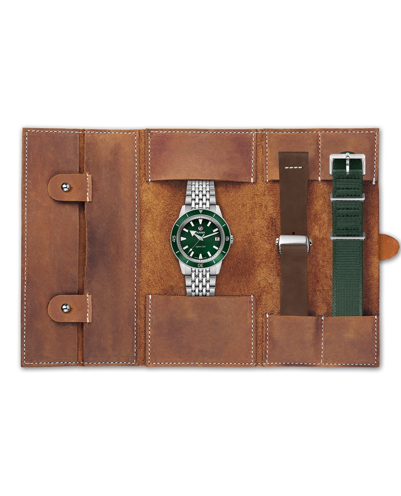 В комплект входят сменные текстильный и кожаный ремни, а также инструмент для их быстрой установки, что позволяет легко адаптировать часы под разные стили одежды и ситуации. Футляр для хранения обеспечивает безопасность и удобство при транспортировке часов.