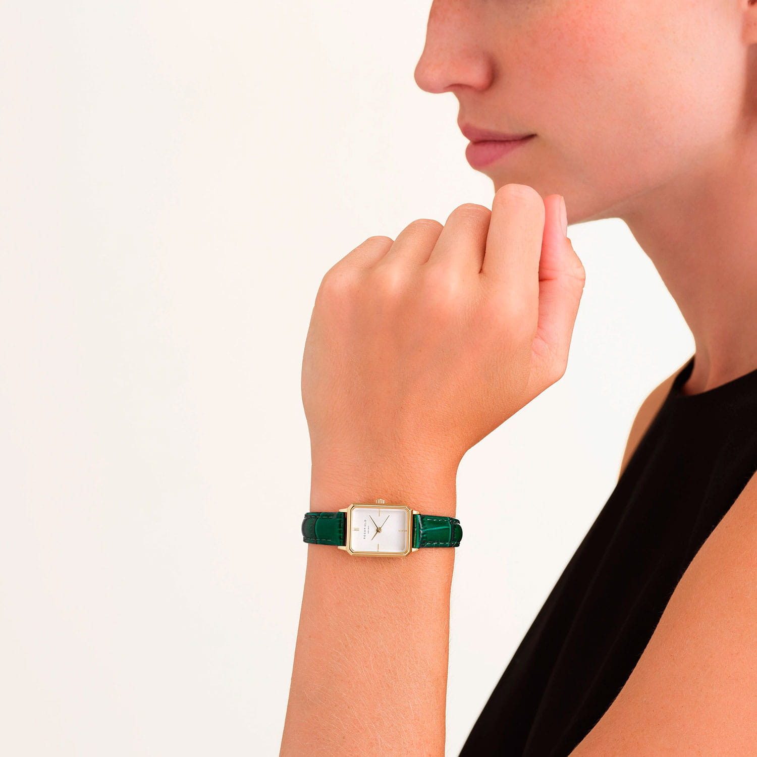 Женские кварцевые часы Rosefield Octagon XS OWGLG-O86. Центральные часовая, минутная и секундная стрелки. Корпус выполнен из латуни с IP-покрытиемIP-покрытиеМетод ионного напыления. Демонстрирует повышенную устойчивость к истиранию, окислению и химическим веществам. Под воздействием высокого давления и температуры около 1500°C молекулы металла надёжно соединяются с частицами корпуса часов.. Прочное минеральное стеклоМинеральное стеклоМинеральное стекло представляет собой искусственно выращенный минерал кварца. Такое стекло отличается особой устойчивостью к повреждениям и царапинам. Уступает по некоторым качествам сапфировому стеклу. устойчивое к мелким механическим повреждениям. Класс водозащиты: 30 метров, позволит защитить корпус от случайных брызг или капель дождя. Кожаный ремешок на стандартной застёжке.