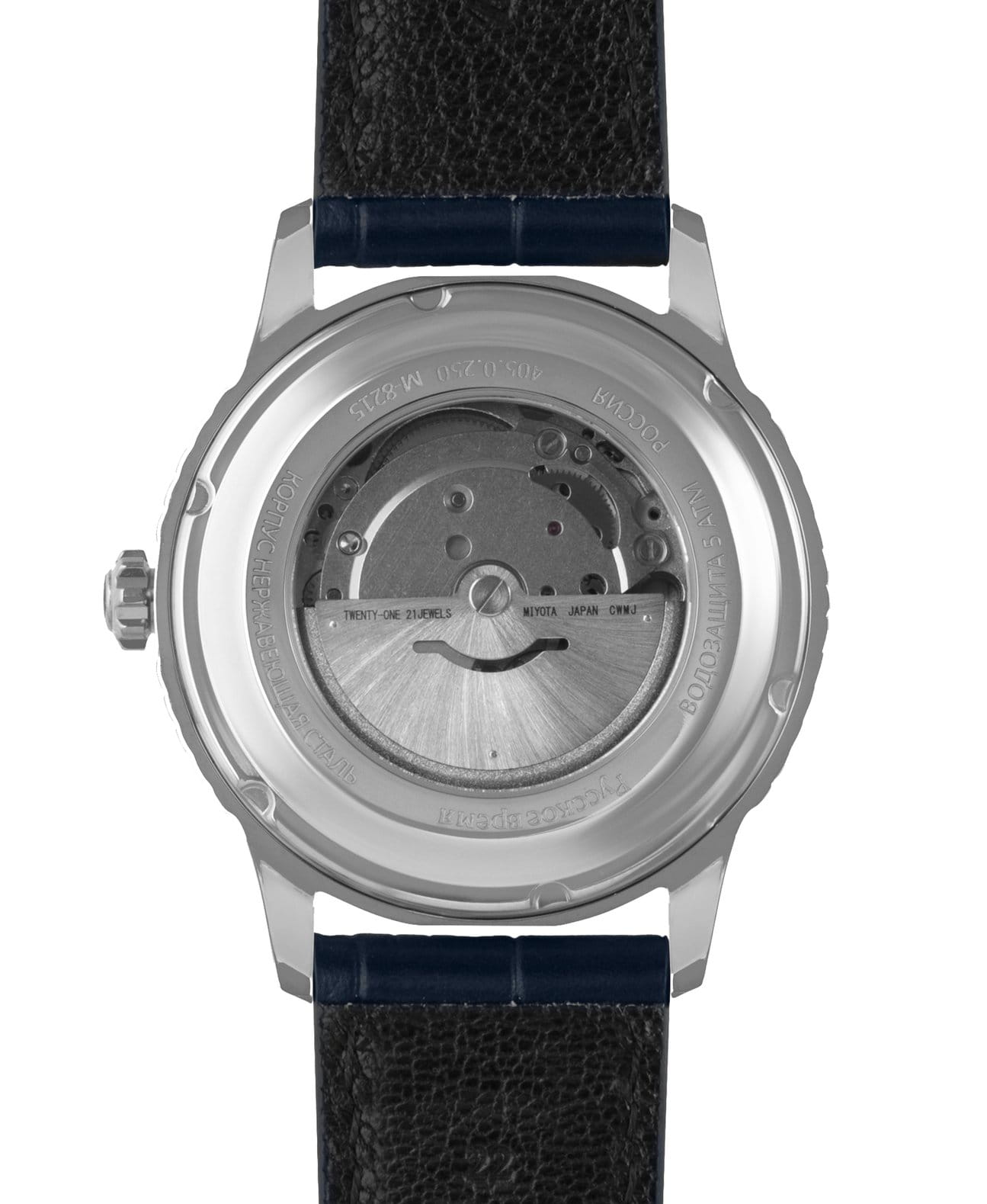 Мужские механические часы с автоподзаводом — это классический аксессуар для ценителя традиций. Корпус размером 42×11 мм выполнен из нержавеющей стали. Циферблат синего цвета оформлен римскими цифрами и стрелками. Окошко даты расположено в положении 3 часов. Стрелки с люминесцентным покрытиемЛюминесцентное покрытиеПозволяет считывать показания времени в темноте. Производители наносят на стрелки, часовые индексы, безель или поверхность циферблата светонакопительный состав, дающий холодное свечение., обеспечивающим хорошую читаемость в темноте. Циферблат защищён минеральным стекломМинеральное стеклоМинеральное стекло представляет собой искусственно выращенный минерал кварца. Такое стекло отличается особой устойчивостью к повреждениям и царапинам. Уступает по некоторым качествам сапфировому стеклу.. Часы оснащены кожаным ремешком с стандартной застёжкой. Водонепроницаемость 50 м позволяет использовать часы в повседневных условиях, включая плавание на поверхности. Идеальный выбор для тех, кто ценит стиль, точность и надёжность.