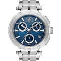 Циферблат подчёркивает индивидуальность модели и гармонично сочетается с серебристыми метками и стрелками. Функционал включает хронографХронографФункция позволяет измерять отрезки времени с особой точностью: часы, минуты, секунды. Верным признаком хронографа является наличие на циферблате 3 дополнительных окошек-счётчиков. с тремя субциферблатами, секундомерСекундомерСекундоме́р — прибор, способный измерять интервалы времени с точностью до долей секунды. и окошко даты, расположенное в области «4 часов». На фиксированном безелеБезельВнешний ободок, закрепляющий стекло. В спортивных часах так называется поворотное кольцо с делениями на циферблате, выполняет роль таймера – замеряет отрезки времени на шкале. Неподвижный безель – элемент декора. Однонаправленно вращающийся безель на дайверских часах позволяет фиксировать моменты погружения и выныривания на поверхность. размещена тахиметрическая шкала ТахиметрТахиметрРазмеченная шкала, располагается на ободке или безеле часов. Тахиметр позволяет рассчитать скорость на определённом участке пути, расстояние измеряется в километрах или милях., позволяющая измерять скорость.