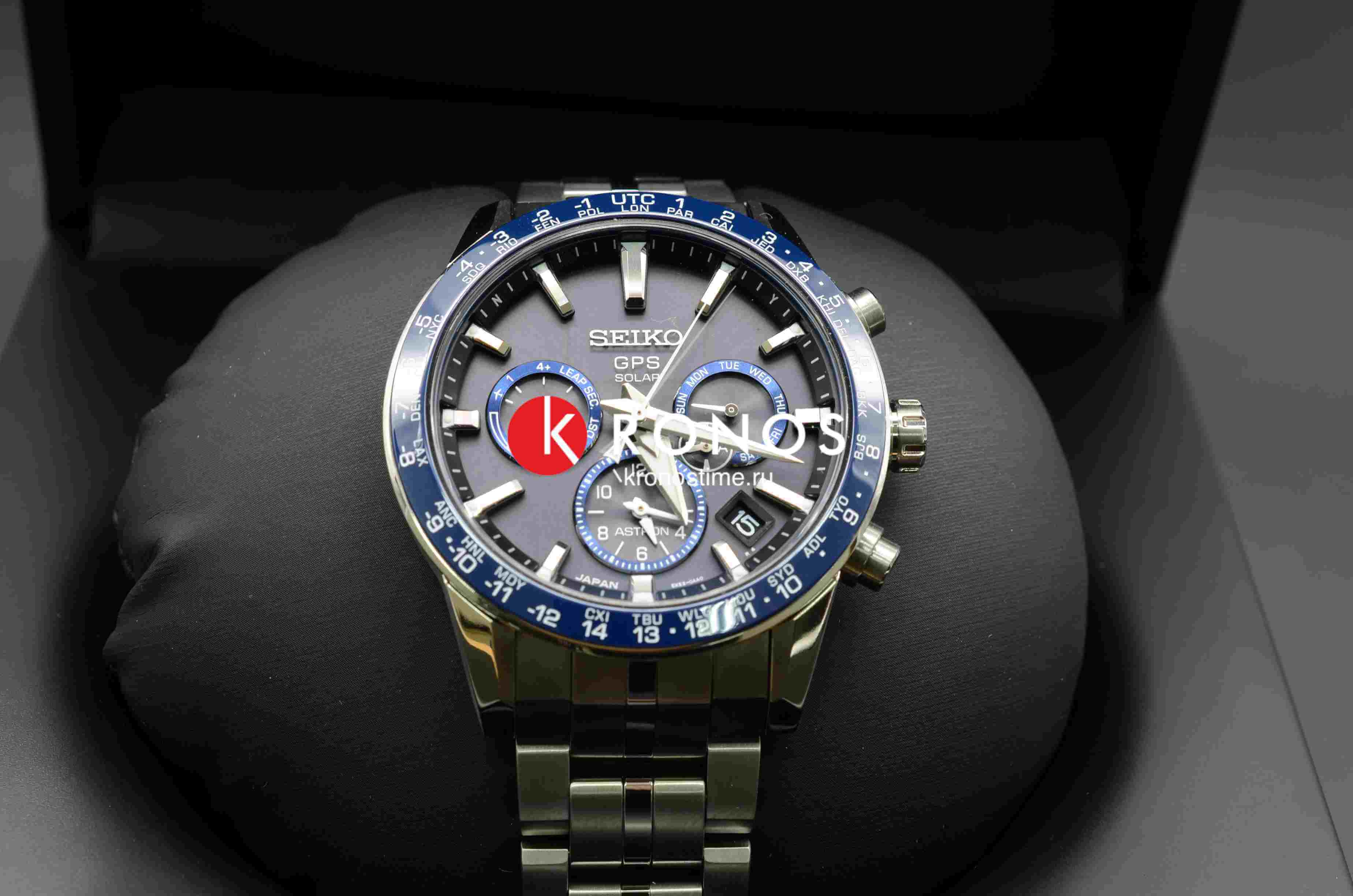Боковые части оставлены матовыми, корпус же отполирован вручную путём инновационной технологии Seiko Zaratsu, позволяющей добиться гладкой зеркальной поверхности. Внутри титанового корпуса находится кварцевый механизм собственного производства Seiko 5X53, его точность хода - +/-15 секунд в месяц. Это часы на солнечной батарее - реализуется возможность . Функции: мировое времяМировое время Полезное часовое усложнение, отображающее время в основных городах и известных областях по всему миру, оно связано с часовыми поясами, удобно для путешественников и бизнесменов. , GPSGPSСистема спутниковой навигации. Часы оснащены приёмником GPS-сигнала, который получает необходимую информацию по GSM, GPRS, со спутников. Принимая сигнал, наручные часы могут установить точные показатели времени и даты, часовой пояс, сообщить местоположение своего владельца.