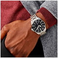 Мужские наручные часы Seiko SNE597P1 из коллекции Prospex сочетают в себе классический дизайн и надежность современных технологий. Модель обладает круглым корпусом диаметром 41 мм, изготовленным из нержавеющей стали, что обеспечивает высокую устойчивость к внешним воздействиям . Толщина корпуса составляет 11,34 мм, а для защиты используется сапфировое стеклоСапфировое стеклоПрочный и надёжный материал из кристалла сапфира синтетического происхождения, характеризующийся особой твёрдостью и устойчивостью к царапинам и повреждениям., обеспечивающее прочную защиту от царапин .  Браслет также выполнен из нержавеющей стали с раскладной застежкойРаскладная застёжкаТакой тип застёжки используется только на браслетах из металла. Она никогда не раскрывается полностью, происходит разделение на 2 и более частей. Раскладывающая застёжка снизит вероятность потери часов к минимуму., гарантирующей комфортное ношение . Циферблат черного цвета украшен текстурой, которая подчеркивает элегантный стиль модели. Часы оснащены функцией отображения даты на позиции «3 часа» .  Водонепроницаемость составляет 200 метров, что позволяет использовать часы для плавания и других водных видов спорта . Часы также оснащены люминесцентным покрытиемЛюминесцентное покрытиеПозволяет считывать показания времени в темноте. Производители наносят на стрелки, часовые индексы, безель или поверхность циферблата светонакопительный состав, дающий холодное свечение. на стрелках и метках, обеспечивающим отличную видимость в темноте .
