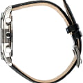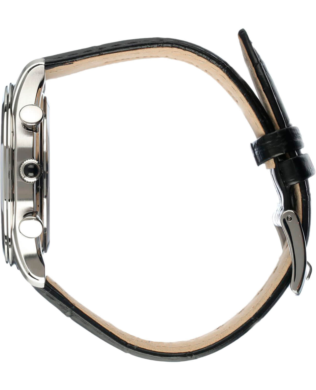 Элегантный хронографХронографФункция позволяет измерять отрезки времени с особой точностью: часы, минуты, секунды. Верным признаком хронографа является наличие на циферблате 3 дополнительных окошек-счётчиков. дополнен спортивными деталями: шкала тахиметраТахиметрРазмеченная шкала, располагается на ободке или безеле часов. Тахиметр позволяет рассчитать скорость на определённом участке пути, расстояние измеряется в километрах или милях., отображение даты, ретроградный указатель дня недели, окошко будильника и секундомера. Аксессуар будет одинаково хорошо дополнять как повседневный, так и деловой образ. Чёрный ремешок из натуральной кожи гармонично сочетается с отполированным кабашоном на заводной головке. Циферблат защищён прочным минеральным стеклом Hardlex, отличающимся устойчивостью к царапинам. В основе работы – кварцевый японский механизм Seiko 7T86. Надёжный корпус из нержавеющей стали 316L выдерживает высокие нагрузки. Наручные часы сохраняют водонепроницаемость при давлении 50 бар. Диаметр корпуса: 40 мм.