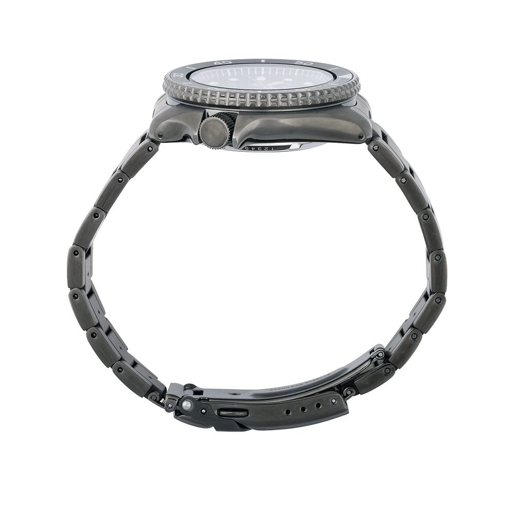 Часы Seiko 5 Sports SRPD65K1S сочетают в себе элегантный дизайн и надёжность, характерные для японского часового мастерства. Корпус диаметром 42,5 мм выполнен из нержавеющей стали с чёрным PVD-покрытиемPVDУльтратонкое покрытие наносится в технике вакуумного напыления, сочетает в себе нитрид титана особой прочности со слоем золота или оксида хрома. Несёт в себе декоративную или защитную функцию., придающим часам утончённый вид. Чёрный циферблат защищён минеральным стекломМинеральное стеклоМинеральное стекло представляет собой искусственно выращенный минерал кварца. Такое стекло отличается особой устойчивостью к повреждениям и царапинам. Уступает по некоторым качествам сапфировому стеклу. с повышенной прочностью. ​​