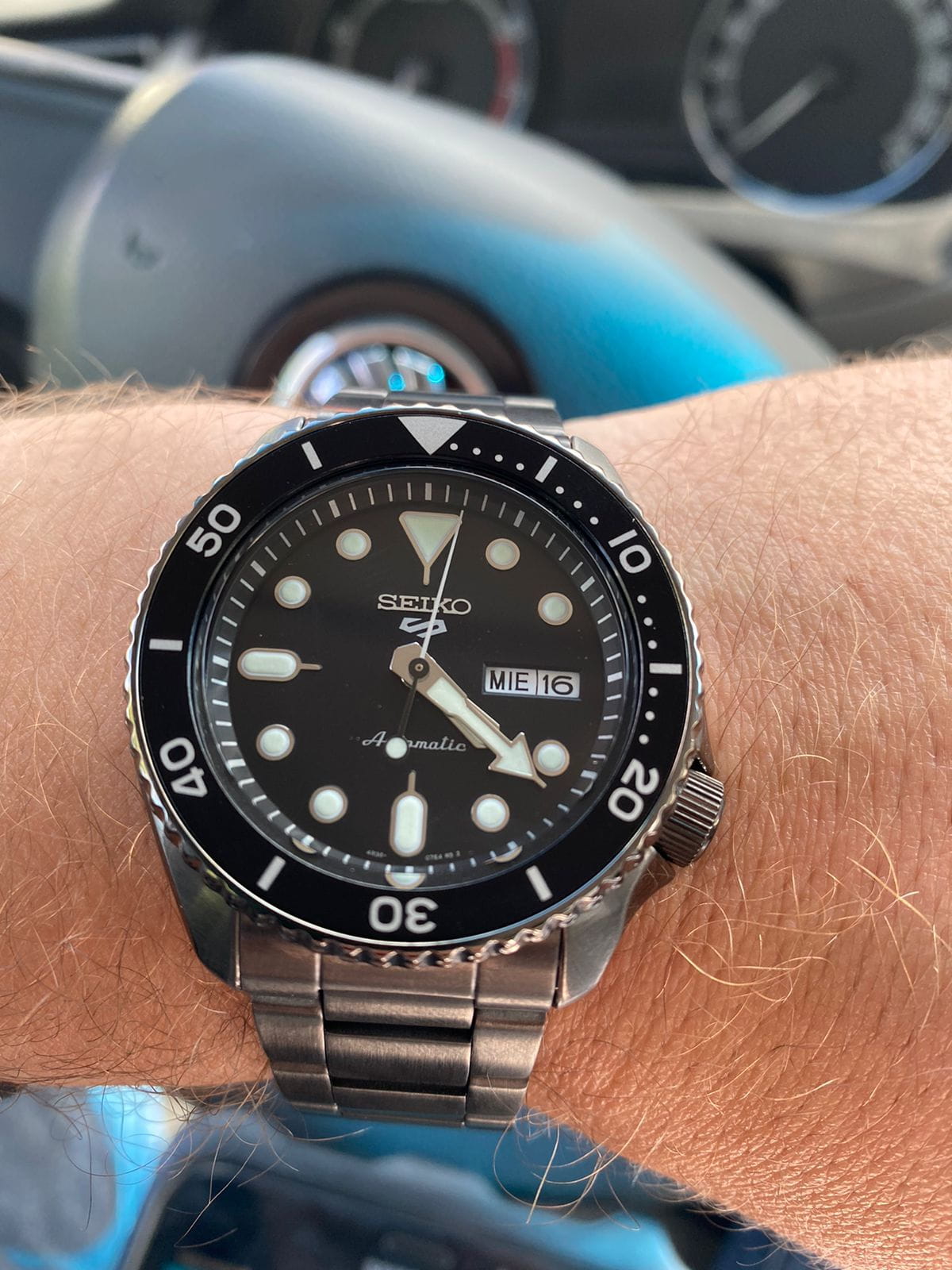 Водозащита 100 метров (10 бар) позволяет использовать часы для плавания и других водных видов спорта. Стальной браслет с чёрным PVD-покрытиемPVDУльтратонкое покрытие наносится в технике вакуумного напыления, сочетает в себе нитрид титана особой прочности со слоем золота или оксида хрома. Несёт в себе декоративную или защитную функцию. и раскладной застёжкойРаскладная застёжкаТакой тип застёжки используется только на браслетах из металла. Она никогда не раскрывается полностью, происходит разделение на 2 и более частей. Раскладывающая застёжка снизит вероятность потери часов к минимуму. обеспечивает комфортное ношение и надёжную фиксацию на запястье. ​​