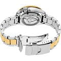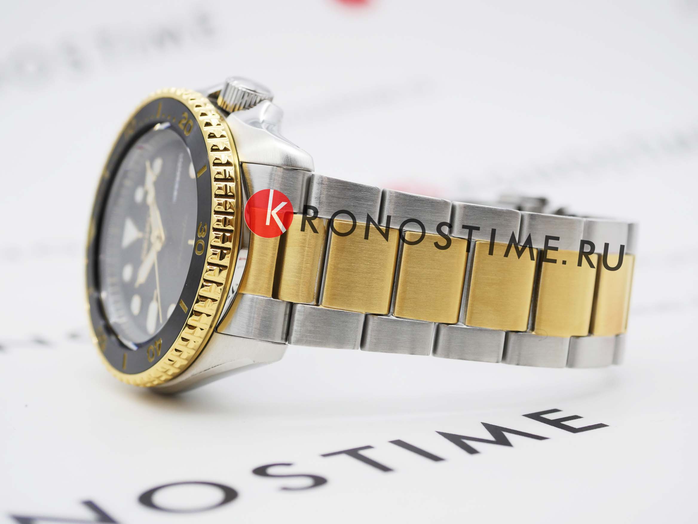 Водозащита 100 метров (10 бар) позволяет использовать часы для плавания и других водных видов спорта. Стальной браслет с двухцветным PVD-покрытиемPVDУльтратонкое покрытие наносится в технике вакуумного напыления, сочетает в себе нитрид титана особой прочности со слоем золота или оксида хрома. Несёт в себе декоративную или защитную функцию. и раскладной застёжкойРаскладная застёжкаТакой тип застёжки используется только на браслетах из металла. Она никогда не раскрывается полностью, происходит разделение на 2 и более частей. Раскладывающая застёжка снизит вероятность потери часов к минимуму. обеспечивает комфортное ношение и надёжную фиксацию на запястье. ​​