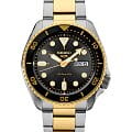 Часы Seiko 5 Sports SRPK22 сочетают в себе элегантный дизайн и надёжность, характерные для японского часового мастерства. Корпус диаметром 42,5 мм выполнен из нержавеющей стали с двухцветным PVD-покрытиемPVDУльтратонкое покрытие наносится в технике вакуумного напыления, сочетает в себе нитрид титана особой прочности со слоем золота или оксида хрома. Несёт в себе декоративную или защитную функцию.: сочетание серебристого и золотистого тонов придаёт часам утончённый вид. Чёрный циферблат защищён минеральным стекломМинеральное стеклоМинеральное стекло представляет собой искусственно выращенный минерал кварца. Такое стекло отличается особой устойчивостью к повреждениям и царапинам. Уступает по некоторым качествам сапфировому стеклу. с повышенной прочностью. ​​