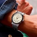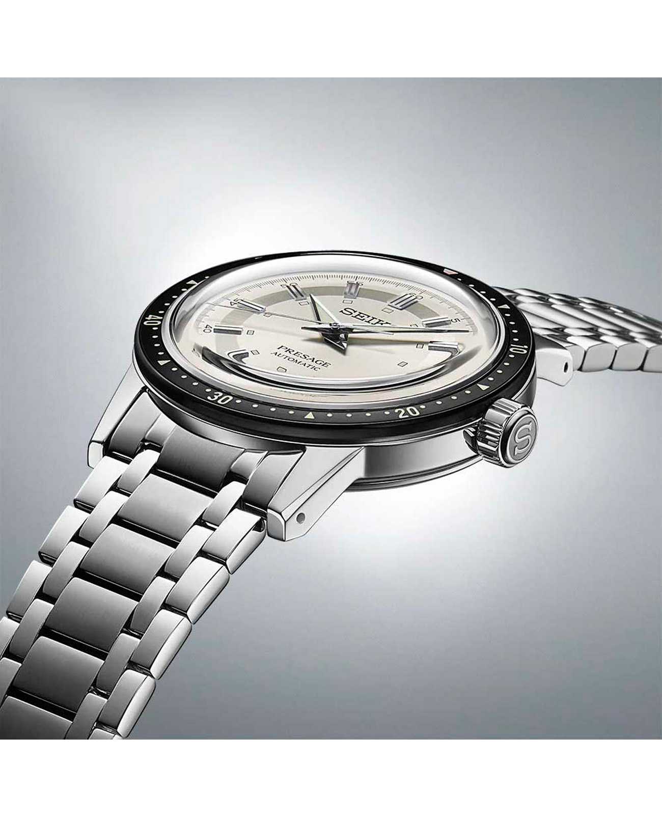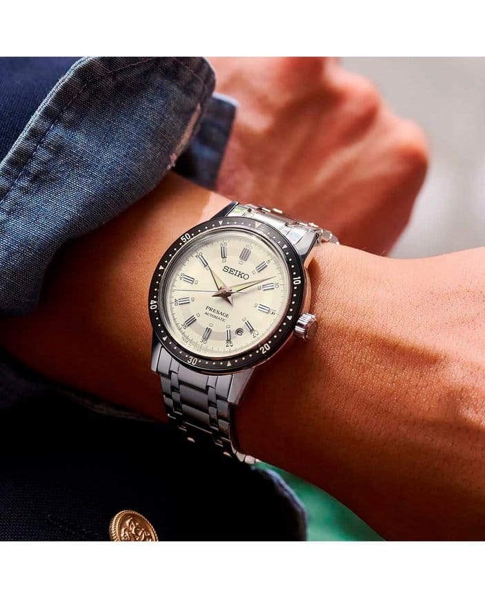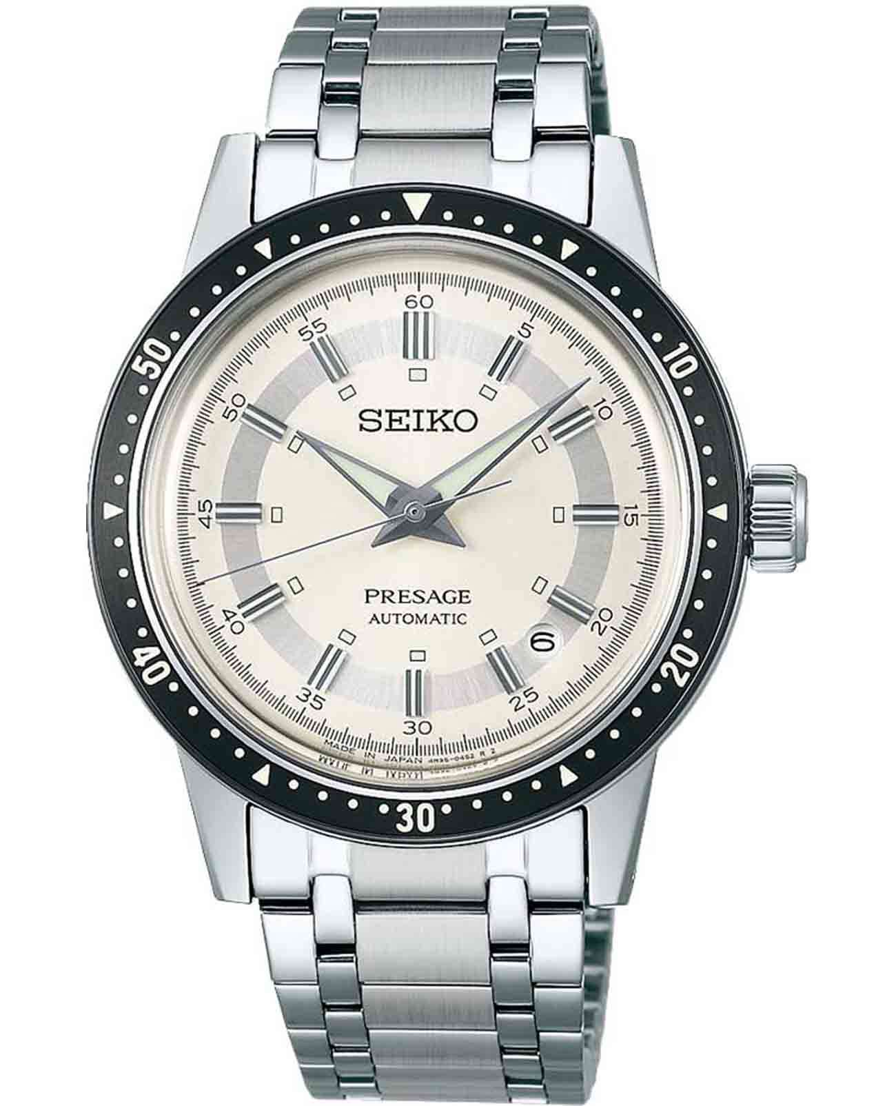 Мужские наручные часы Seiko SRPK61J1 из коллекции Presage Style 60s сочетают в себе классический дизайн и надежность современных технологий. Модель обладает круглым корпусом, изготовленным из нержавеющей стали, что обеспечивает высокую устойчивость к внешним воздействиям . Браслет также выполнен из нержавеющей стали с раскладной застежкойРаскладной замокДанный вариант застежки используется только на часах с металлическим браслетом. Отличительная особенность такого крепления в том, что длина браслета становится универсальной и вы можете самостоятельно отрегулировать нужный вам размер – застежка просто двигается по браслету часов., гарантирующей комфортное ношение . БезельБезельВнешний ободок, закрепляющий стекло. В спортивных часах так называется поворотное кольцо с делениями на циферблате, выполняет роль таймера – замеряет отрезки времени на шкале. Неподвижный безель – элемент декора. Однонаправленно вращающийся безель на дайверских часах позволяет фиксировать моменты погружения и выныривания на поверхность. с PVD-покрытиемPVDУльтратонкое покрытие наносится в технике вакуумного напыления, сочетает в себе нитрид титана особой прочности со слоем золота или оксида хрома. Несёт в себе декоративную или защитную функцию.. Циферблат часов украшен текстурой, которая подчеркивает винтажный стиль модели. Для защиты используется минеральное стеклоМинеральное стеклоМинеральное стекло представляет собой искусственно выращенный минерал кварца. Такое стекло отличается особой устойчивостью к повреждениям и царапинам. Уступает по некоторым качествам сапфировому стеклу. Hardlex Crystal, обеспечивающее прочную защиту от царапин . Часы работают на автоматическом механизме с калибром 4R35, который включает возможность ручного завода и обладает запасом хода до 41 часа . Часы также оснащены люминесцентным покрытиемЛюминесцентное покрытиеПозволяет считывать показания времени в темноте. Производители наносят на стрелки, часовые индексы, безель или поверхность циферблата светонакопительный состав, дающий холодное свечение. на стрелках и метках, обеспечивающим отличную видимость в темноте, а также имеет водонепроницаемость WR 50, что позволяет защитить корпус от случайных брызг и кратковременного контакта с водой. Вдохновленные культурой 60-х годов, эти часы демонстрируют уникальный стиль и внимание к деталям.