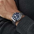 Мужские наручные часы Seiko SRPK97 из коллекции 5 Sports сочетают в себе стильный дизайн и надежность современных технологий. Модель обладает круглым корпусом диаметром 42,5 мм, изготовленным из нержавеющей стали, что обеспечивает высокую устойчивость к внешним воздействиям. БезельБезельВнешний ободок, закрепляющий стекло. В спортивных часах так называется поворотное кольцо с делениями на циферблате, выполняет роль таймера – замеряет отрезки времени на шкале. Неподвижный безель – элемент декора. Однонаправленно вращающийся безель на дайверских часах позволяет фиксировать моменты погружения и выныривания на поверхность. с PVD-покрытиемPVDУльтратонкое покрытие наносится в технике вакуумного напыления, сочетает в себе нитрид титана особой прочности со слоем золота или оксида хрома. Несёт в себе декоративную или защитную функцию.. Для защиты циферблата используется минеральное стеклоМинеральное стеклоМинеральное стекло представляет собой искусственно выращенный минерал кварца. Такое стекло отличается особой устойчивостью к повреждениям и царапинам. Уступает по некоторым качествам сапфировому стеклу., которое эффективно противостоит царапинам и механическим повреждениям. Часы оснащены автоматическим механизмом с калибром 4R36, поддерживающим автоподзавод и имеющим запас хода около 41 часа. Водонепроницаемость модели достигает 10 атмосфер (100 метров), что позволяет использовать их во время плавания и других водных видов спорта. Стальной браслет на раскладной застёжкеРаскладная застёжкаТакой тип застёжки используется только на браслетах из металла. Она никогда не раскрывается полностью, происходит разделение на 2 и более частей. Раскладывающая застёжка снизит вероятность потери часов к минимуму.. Циферблат оснащен функцией индикации даты, центральной секундной стрелкой и люминесцентным покрытиемЛюминесцентное покрытиеПозволяет считывать показания времени в темноте. Производители наносят на стрелки, часовые индексы, безель или поверхность циферблата светонакопительный состав, дающий холодное свечение. стрелок и маркеров для удобства использования в темное время суток.