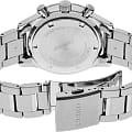 Мужские японские часы Seiko Conceptual Series Sports SSB413P1 c хронографомХронографФункция позволяет измерять отрезки времени с особой точностью: часы, минуты, секунды. Верным признаком хронографа является наличие на циферблате 3 дополнительных окошек-счётчиков., кварцевый механизм с высокой точностью. Сапфировое стеклоСапфировое стеклоПрочный и надёжный материал из кристалла сапфира синтетического происхождения, характеризующийся особой твёрдостью и устойчивостью к царапинам и повреждениям., устойчивое к появлению царапин, обладающее высокой прозрачностью. Класс водозащиты: 100 метров, позволит плавать, нырять и заниматься другими водными видами спорта. Корпус и браслет часов изготовлен из стали. Неподвижный безельБезельВнешний ободок, закрепляющий стекло. В спортивных часах так называется поворотное кольцо с делениями на циферблате, выполняет роль таймера – замеряет отрезки времени на шкале. Неподвижный безель – элемент декора. Однонаправленно вращающийся безель на дайверских часах позволяет фиксировать моменты погружения и выныривания на поверхность. со шкалой тахиметраТахиметрРазмеченная шкала, располагается на ободке или безеле часов. Тахиметр позволяет рассчитать скорость на определённом участке пути, расстояние измеряется в километрах или милях.. Стрелки и метки с люминесцентным покрытиемЛюминесцентное покрытиеПозволяет считывать показания времени в темноте. Производители наносят на стрелки, часовые индексы, безель или поверхность циферблата светонакопительный состав, дающий холодное свечение. LumiBrite. Браслет на раскладной застёжкеРаскладная застёжкаТакой тип застёжки используется только на браслетах из металла. Она никогда не раскрывается полностью, происходит разделение на 2 и более частей. Раскладывающая застёжка снизит вероятность потери часов к минимуму. с кнопками. СекундомерСекундомерСекундоме́р — прибор, способный измерять интервалы времени с точностью до долей секунды.. Окошко даты находится в положении между 4 и 5 часов.