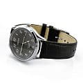 Наручные часы в строгом стиле выполнены в чёрном цвете, универсальный оттенок в сочетании с серебристым корпусом создаёт гармонию. Контрастные арабские цифры идеально читаются на тёмном фоне. Высокая точность хода ±15 секунд в месяц обеспечивается японским кварцевым механизмом Seiko 7N42. Классический ремешок изготовлен из натуральной телячьей кожи, поверхность имеет тиснение под кожу крокодила. Корпус сделан из нержавеющей стали 316L, циферблат защищает сапфировое стекло. Задняя крышка завинчивается, дополнительно способствуя водостойкости до 100 метров. Календарь – практичная функция позволит всегда быть в курсе событий. Диаметр корпуса: 40 мм.