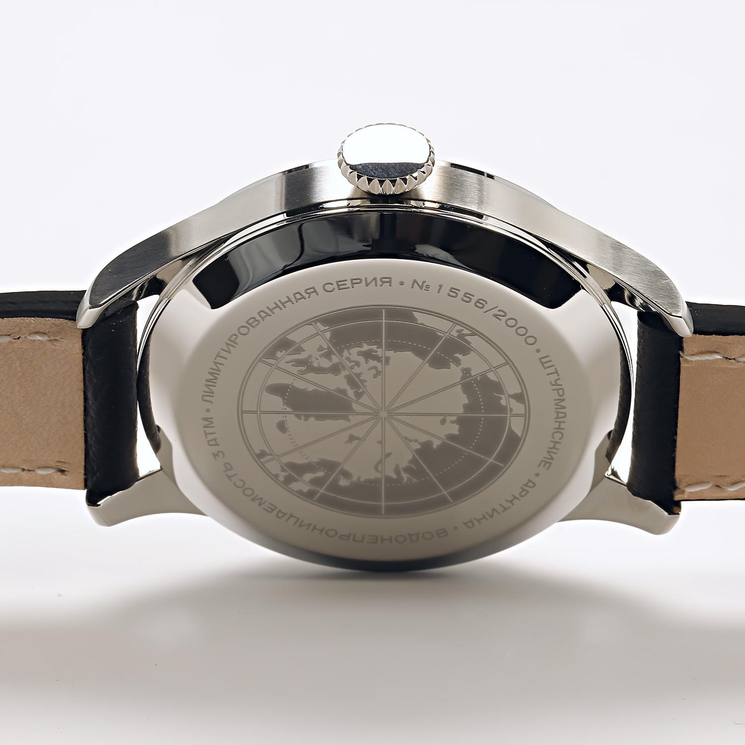 Штурманские мужские российские механические часы с механизмом высокой точности. Класс водозащиты: 30 метров, позволит защитить корпус от случайных брызг или капель дождя. Корпус часов изготовлен из стали. Органическое стекло устойчивое к мелким механическим повреждениям.Кожаный ремешок на стандартной застёжке. Стрелки и метки с люминесцентным покрытиемЛюминесцентное покрытиеПозволяет считывать показания времени в темноте. Производители наносят на стрелки, часовые индексы, безель или поверхность циферблата светонакопительный состав, дающий холодное свечение.. Окошко даты находится в положении 3 часа. Задняя крышка украшена картой Арктики.