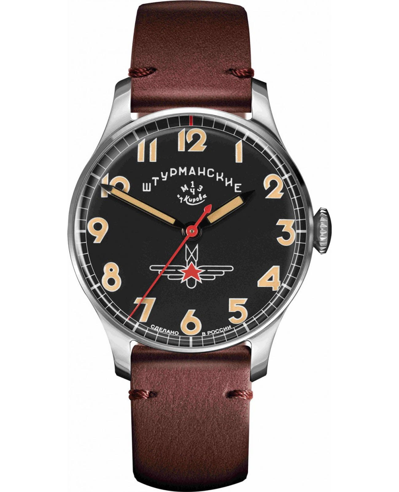 Мужские российские механические часы Штурманские Гагарин Наследие 2609/3751471, механический механизм (автоматический калибр) с высокой точностью. Минеральное стеклоМинеральное стеклоМинеральное стекло представляет собой искусственно выращенный минерал кварца. Такое стекло отличается особой устойчивостью к повреждениям и царапинам. Уступает по некоторым качествам сапфировому стеклу. устойчивое к мелким механическим повреждениям. Класс водозащиты: 50 метров, позволит защитить корпус от случайных брызг или капель дождя. Корпус часов изготовлен из стали. Кожаный ремешок на стандартной застёжке. Стрелки и метки с люминесцентным покрытиемЛюминесцентное покрытиеПозволяет считывать показания времени в темноте. Производители наносят на стрелки, часовые индексы, безель или поверхность циферблата светонакопительный состав, дающий холодное свечение.. Чёткая, читаемая минутная шкала уходит за приделы видимой области циферблата, подчёркивая изящность ободка корпуса. Оцифровка циферблата – отличительная особенность данной модели, её дизайн не изменился с самой первый, гагаринской серии. Заводная головка конической формы с удобной насечкой повторяет дизайн оригинальной модели.
