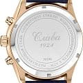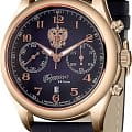 Российские механические часы-хронографХронографФункция позволяет измерять отрезки времени с особой точностью: часы, минуты, секунды. Верным признаком хронографа является наличие на циферблате 3 дополнительных окошек-счётчиков. с секундомеромСекундомерСекундоме́р — прибор, способный измерять интервалы времени с точностью до долей секунды. Слава 1883143/300-4617, созданные для тех, кто ценит стиль и надежность. Эти часы сочетают в себе классический дизайн и современные технологии, предлагая исключительную функциональность и элегантность. Часы оснащены механизмом Peacock 4617 с автоподзаводом, а запас хода достигает 45 часов, что делает их идеальным выбором для повседневного использования. Корпус часов диаметром 42 мм выполнен из стали с изысканным розовым IP-покрытиемIP-покрытиеМетод ионного напыления. Демонстрирует повышенную устойчивость к истиранию, окислению и химическим веществам. Под воздействием высокого давления и температуры около 1500°C молекулы металла надёжно соединяются с частицами корпуса часов.. Синий циферблат украшен изображением герба Российской Федерации и дополнен арабскими цифрами, что обеспечивает отличную читаемость. Стрелки с люминесцентным покрытиемЛюминесцентное покрытиеПозволяет считывать показания времени в темноте. Производители наносят на стрелки, часовые индексы, безель или поверхность циферблата светонакопительный состав, дающий холодное свечение. облегчают чтение времени даже в условиях слабого освещения. Окошко даты расположено в положении 6 часов, добавляя дополнительную практичность. Защиту обеспечивает сапфировое стеклоСапфировое стеклоПрочный и надёжный материал из кристалла сапфира синтетического происхождения, характеризующийся особой твёрдостью и устойчивостью к царапинам и повреждениям., устойчивое к царапинам, и водозащита до 50WR, что позволяет носить часы в различных условиях. Рифленая заводная головка и кожаный ремешок с классической застежкой завершают образ, придавая часам дополнительную элегантность и комфорт.