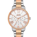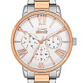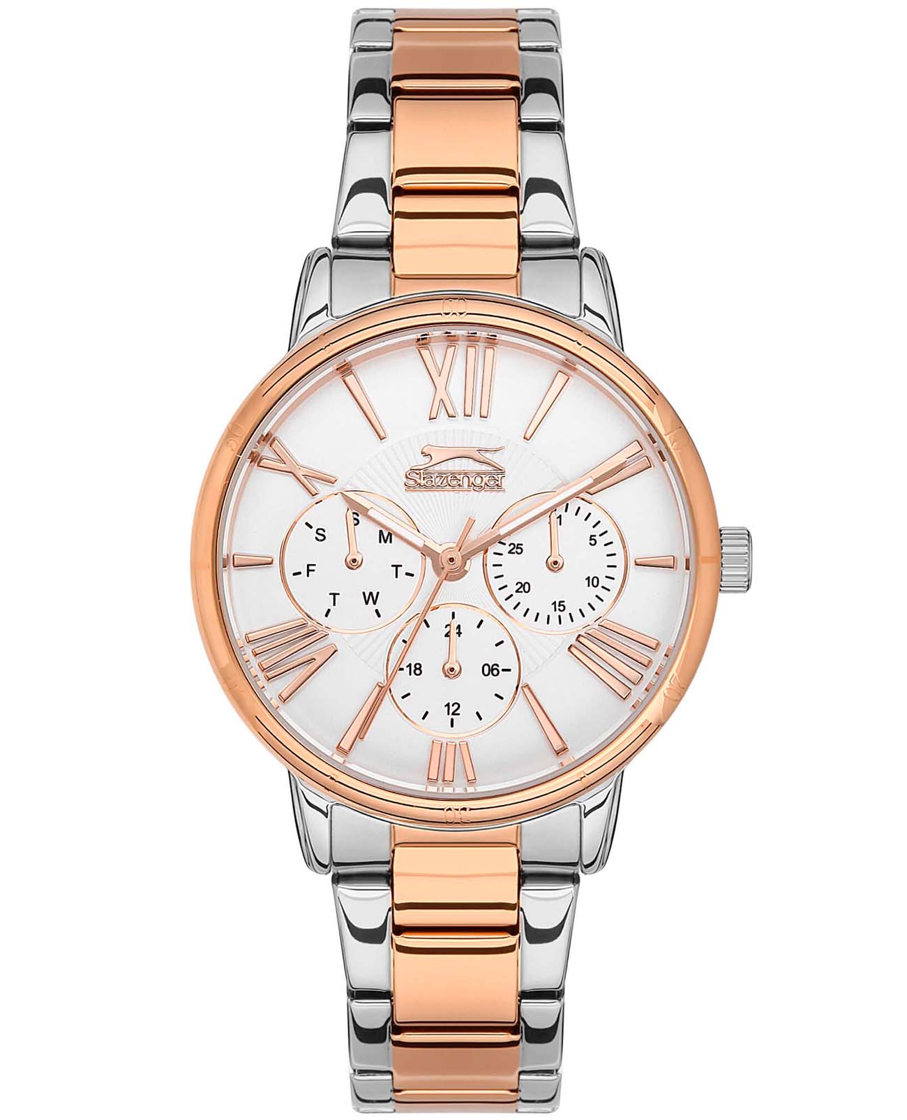 Женские наручные часы Slazenger SL.09.2072.4.05 представляют собой стильное сочетание классики и современных технологий. Модель имеет круглый корпус диаметром 35 мм, изготовленный из суперметалла, что обеспечивает высокую устойчивость к внешним воздействиям. Браслет выполнен из того же материала с частичным IP-покрытиемIP-покрытиеМетод ионного напыления. Демонстрирует повышенную устойчивость к истиранию, окислению и химическим веществам. Под воздействием высокого давления и температуры около 1500°C молекулы металла надёжно соединяются с частицами корпуса часов. и оснащен раскладной застежкойРаскладной замокДанный вариант застежки используется только на часах с металлическим браслетом. Отличительная особенность такого крепления в том, что длина браслета становится универсальной и вы можете самостоятельно отрегулировать нужный вам размер – застежка просто двигается по браслету часов., гарантирующей комфортное ношение и надежную фиксацию на запястье. Циферблат украшен малыми циферблатами, которые отображают дату, день недели и текущее время в 24-часовом формате. Для защиты используется минеральное стеклоМинеральное стеклоМинеральное стекло представляет собой искусственно выращенный минерал кварца. Такое стекло отличается особой устойчивостью к повреждениям и царапинам. Уступает по некоторым качествам сапфировому стеклу., обеспечивающее прочную защиту от царапин. Часы работают на кварцевом механизме, что гарантирует точное время без необходимости подзаводки. Водонепроницаемость достигает 3 атмосфер (WR30), что позволяет использовать их при легком контакте с водой, например, во время мытья рук или хождения под мелким дождем.