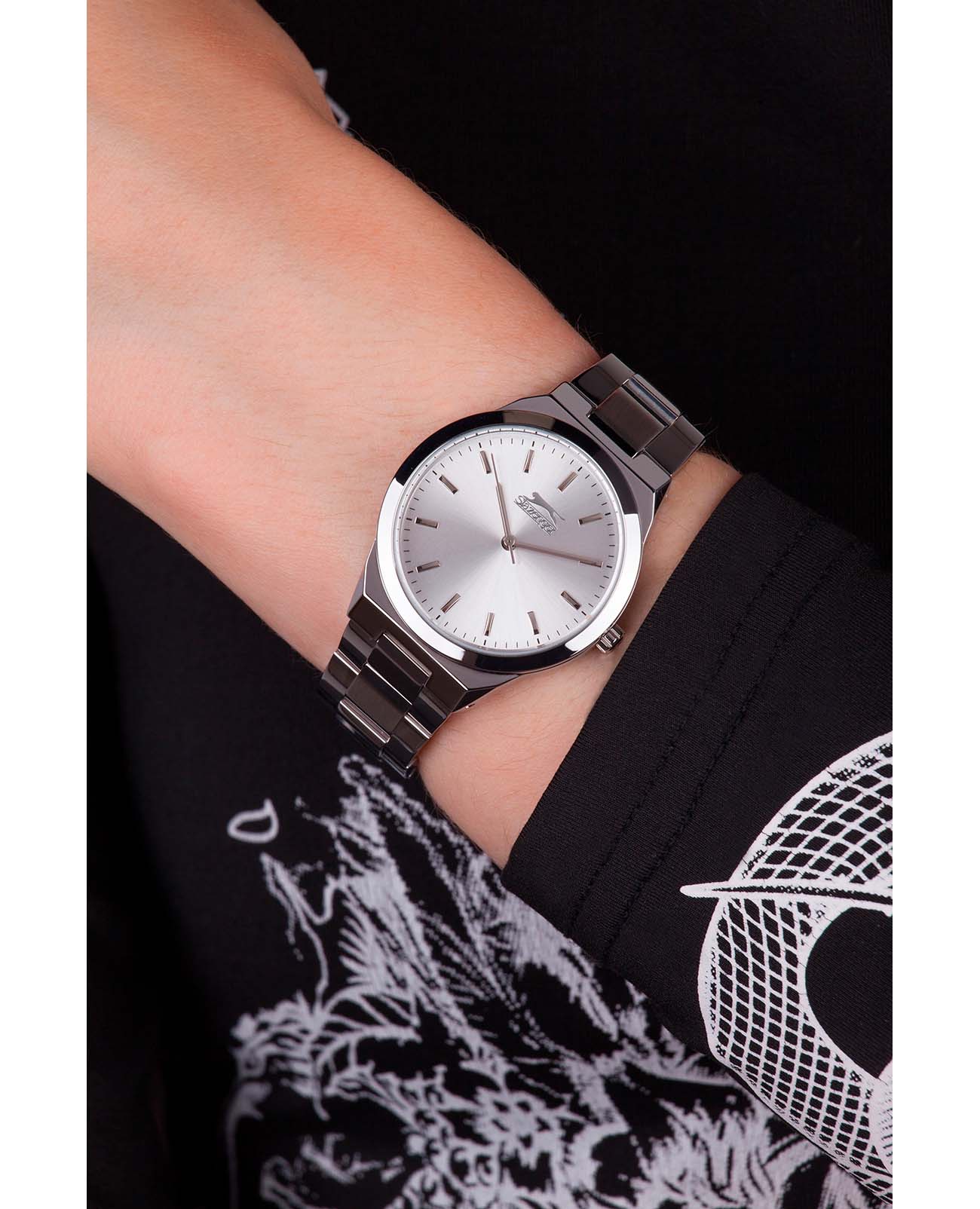 Женские наручные часы Slazenger SL.09.2075.3.01 сочетают в себе элегантный дизайн и современные технологии. Модель обладает круглым корпусом диаметром 34 мм, изготовленным из суперметалла, что обеспечивает высокую устойчивость к внешним воздействиям. Браслет выполнен из того же материала с раскладной застежкойРаскладной замокДанный вариант застежки используется только на часах с металлическим браслетом. Отличительная особенность такого крепления в том, что длина браслета становится универсальной и вы можете самостоятельно отрегулировать нужный вам размер – застежка просто двигается по браслету часов., гарантирующей комфортное ношение и безопасность. Для защиты используется минеральное стеклоМинеральное стеклоМинеральное стекло представляет собой искусственно выращенный минерал кварца. Такое стекло отличается особой устойчивостью к повреждениям и царапинам. Уступает по некоторым качествам сапфировому стеклу., обеспечивающее прочную защиту от царапин. Часы работают на кварцевом механизме, что гарантирует точное время без необходимости подзаводки. Водонепроницаемость достигает 3 атмосфер (WR30), что позволяет использовать их при контакте с брызгами воды, однако не рекомендуется для плавания или дайвинга.