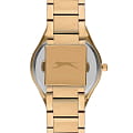 Женские наручные часы Slazenger SL.09.2075.3.02 сочетают в себе элегантный дизайн и функциональность. Модель обладает круглым корпусом диаметром 34 мм, изготовленным из суперметалла с IP-покрытиемIP-покрытиеМетод ионного напыления. Демонстрирует повышенную устойчивость к истиранию, окислению и химическим веществам. Под воздействием высокого давления и температуры около 1500°C молекулы металла надёжно соединяются с частицами корпуса часов., что обеспечивает высокую устойчивость к внешним воздействиям. Браслет выполнен из того же материала с раскладной застежкойРаскладной замокДанный вариант застежки используется только на часах с металлическим браслетом. Отличительная особенность такого крепления в том, что длина браслета становится универсальной и вы можете самостоятельно отрегулировать нужный вам размер – застежка просто двигается по браслету часов., гарантирующем комфортное ношение и безопасность. Для защиты используется минеральное стеклоМинеральное стеклоМинеральное стекло представляет собой искусственно выращенный минерал кварца. Такое стекло отличается особой устойчивостью к повреждениям и царапинам. Уступает по некоторым качествам сапфировому стеклу., обеспечивающее прочную защиту от царапин. Часы работают на кварцевом механизме, что гарантирует точное время без необходимости подзаводки. Водонепроницаемость достигает 3 атмосфер (WR30), что позволяет использовать их при контакте с брызгами воды, однако не рекомендуется для плавания или дайвинга.