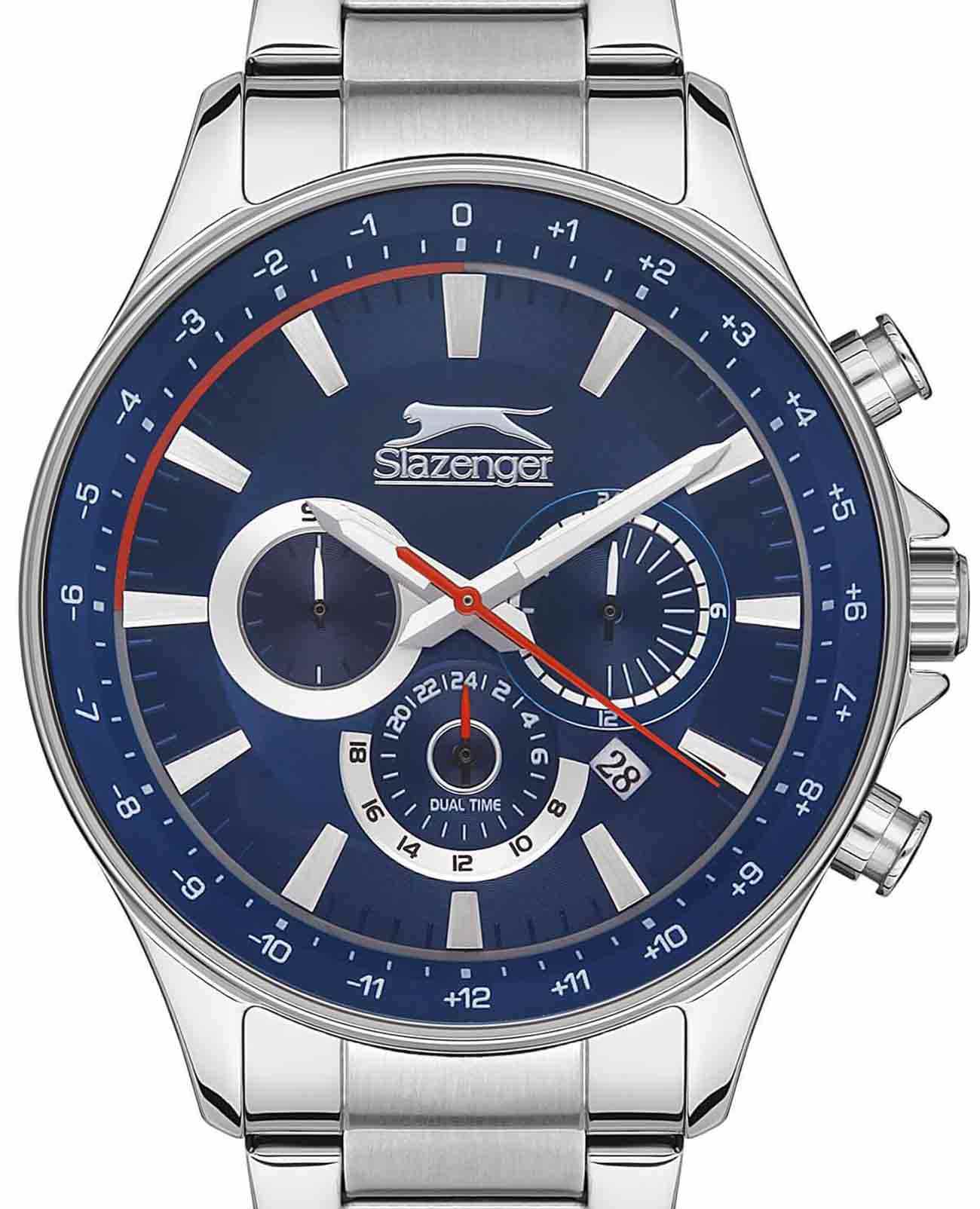 Эти стильные мужские часы Slazenger SL.09.2121.2.02 представляют собой идеальное сочетание функциональности и элегантности. Изготовленные в Англии, они оснащены кварцевым механизмом, обеспечивающим точность и надежность. Металлический корпус и браслет с серебристым оттенком придают часам современный и изысканный вид. Неподвижный безельБезельВнешний ободок, закрепляющий стекло. В спортивных часах так называется поворотное кольцо с делениями на циферблате, выполняет роль таймера – замеряет отрезки времени на шкале. Неподвижный безель – элемент декора. Однонаправленно вращающийся безель на дайверских часах позволяет фиксировать моменты погружения и выныривания на поверхность. из суперметалла с синим IP-покрытиемIP-покрытиеМетод ионного напыления. Демонстрирует повышенную устойчивость к истиранию, окислению и химическим веществам. Под воздействием высокого давления и температуры около 1500°C молекулы металла надёжно соединяются с частицами корпуса часов.. Часы имеют минеральное стеклоМинеральное стеклоМинеральное стекло представляет собой искусственно выращенный минерал кварца. Такое стекло отличается особой устойчивостью к повреждениям и царапинам. Уступает по некоторым качествам сапфировому стеклу., которое защищает циферблат от царапин, а водозащита уровня WR 50 позволяет использовать их в различных условиях, не опасаясь попадания влаги. Люминесцентное покрытиеЛюминесцентное покрытиеПозволяет считывать показания времени в темноте. Производители наносят на стрелки, часовые индексы, безель или поверхность циферблата светонакопительный состав, дающий холодное свечение. на стрелках и метках обеспечивает отличную видимость в темноте. Особенностью этих часов является возможность отображения времени во втором часовом поясе, что удобно для путешественников и людей, работающих с международными партнерами. На дополнительных циферблатах также отображаются день недели и текущее время в 24-часовом формате, а окошко даты обеспечивает дополнительное удобство. Заводная головка часов оснащена защитой, что повышает их долговечность. Браслет с раскладной застежкойРаскладная застёжкаТакой тип застёжки используется только на браслетах из металла. Она никогда не раскрывается полностью, происходит разделение на 2 и более частей. Раскладывающая застёжка снизит вероятность потери часов к минимуму., которая гарантирует удобство и надежность при ношении.