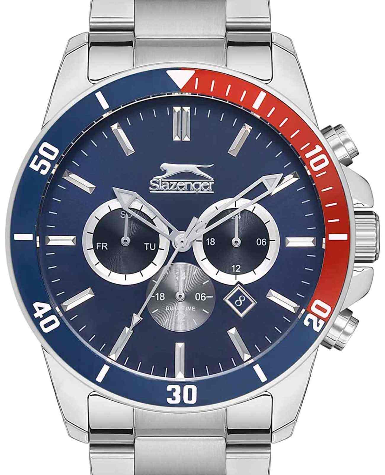 Часы Slazenger SL.09.2147.2.02 представляют собой стильное и функциональное решение для повседневного использования. Они оснащены кварцевым механизмом, который обеспечивает точность хода. Корпус часов выполнен из суперметалла, а безельБезельВнешний ободок, закрепляющий стекло. В спортивных часах так называется поворотное кольцо с делениями на циферблате, выполняет роль таймера – замеряет отрезки времени на шкале. Неподвижный безель – элемент декора. Однонаправленно вращающийся безель на дайверских часах позволяет фиксировать моменты погружения и выныривания на поверхность. с синим и красным IP-покрытиемIP-покрытиеМетод ионного напыления. Демонстрирует повышенную устойчивость к истиранию, окислению и химическим веществам. Под воздействием высокого давления и температуры около 1500°C молекулы металла надёжно соединяются с частицами корпуса часов., что придает ему дополнительную прочность и устойчивость к износу. Диаметр корпуса составляет 46 мм, а его толщина — 13 мм, что делает эти часы заметными, но в то же время удобными для ношения. Синий циферблат с метками в виде штрихов украшен логотипом бренда и выполнен по технологии Sunray, создающей эффект солнечных лучей. На циферблате имеются отдельные окна для отображения даты, дня недели, а также второго часового пояса в 24-часовом формате. Окошко даты удобно расположено между отметками 4 и 5 часов. Часы также поддерживают 12- и 24-часовой формат времени, что делает их универсальными для разных пользователей. Люминесцентное покрытиеЛюминесцентное покрытиеПозволяет считывать показания времени в темноте. Производители наносят на стрелки, часовые индексы, безель или поверхность циферблата светонакопительный состав, дающий холодное свечение. на кончиках стрелок обеспечивает отличную видимость в темноте. Металлический браслет с раскладной застёжкойРаскладная застёжкаТакой тип застёжки используется только на браслетах из металла. Она никогда не раскрывается полностью, происходит разделение на 2 и более частей. Раскладывающая застёжка снизит вероятность потери часов к минимуму. обеспечивает надежную фиксацию на запястье, а его вес в 160 г добавляет ощущение солидности. Водозащита на уровне 50WR позволяет носить часы в условиях повышенной влажности, не беспокоясь об их работоспособности. Минеральное стеклоМинеральное стеклоМинеральное стекло представляет собой искусственно выращенный минерал кварца. Такое стекло отличается особой устойчивостью к повреждениям и царапинам. Уступает по некоторым качествам сапфировому стеклу. защищает циферблат от царапин и повреждений, а рифленая заводная головка с защитой добавляет удобства в управлении настройками. Эти часы сочетают в себе современный дизайн и функциональность, делая их идеальным аксессуаром для тех, кто ценит стиль и точность.