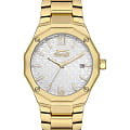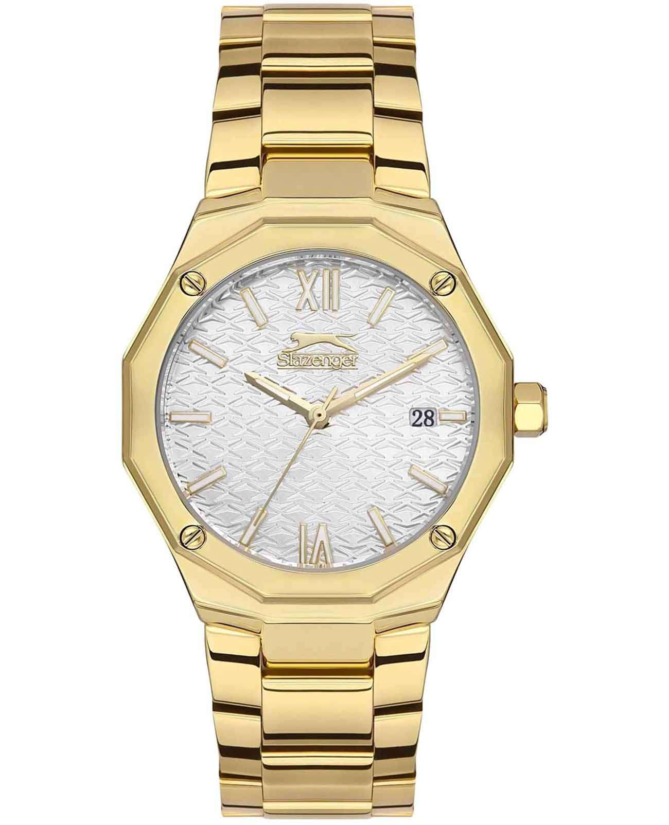 Часы Slazenger SL.09.2149.3.02 — это изящное сочетание классического стиля и современных технологий. Эти женские кварцевые часы привлекают внимание своим серебристым циферблатом, который украшен декоративным рисунком и логотипом бренда. Метки в виде штрихов и римских цифр VI и XII придают циферблату элегантность и читаемость. Окошко даты удобно расположено в положении 3 часа, что позволяет легко следить за числом. Корпус диаметром 34 мм выполнен из суперметалла с золотистым IP-покрытиемIP-покрытиеМетод ионного напыления. Демонстрирует повышенную устойчивость к истиранию, окислению и химическим веществам. Под воздействием высокого давления и температуры около 1500°C молекулы металла надёжно соединяются с частицами корпуса часов., который отличается повышенной прочностью. Толщина корпуса составляет 10 мм, что делает часы утонченными и удобными для повседневного ношения. Двенадцатигранный безельБезельВнешний ободок, закрепляющий стекло. В спортивных часах так называется поворотное кольцо с делениями на циферблате, выполняет роль таймера – замеряет отрезки времени на шкале. Неподвижный безель – элемент декора. Однонаправленно вращающийся безель на дайверских часах позволяет фиксировать моменты погружения и выныривания на поверхность. прикреплен на 4 винтах. Люминесцентное покрытиеЛюминесцентное покрытиеПозволяет считывать показания времени в темноте. Производители наносят на стрелки, часовые индексы, безель или поверхность циферблата светонакопительный состав, дающий холодное свечение. на стрелках обеспечивает отличную видимость в темноте. Металлический браслет с золотистым IP-покрытиемIP-покрытиеМетод ионного напыления. Демонстрирует повышенную устойчивость к истиранию, окислению и химическим веществам. Под воздействием высокого давления и температуры около 1500°C молекулы металла надёжно соединяются с частицами корпуса часов. и раскладной застёжкойРаскладная застёжкаТакой тип застёжки используется только на браслетах из металла. Она никогда не раскрывается полностью, происходит разделение на 2 и более частей. Раскладывающая застёжка снизит вероятность потери часов к минимуму., что обеспечивает надежную фиксацию на запястье и комфорт при носке. Минеральное стеклоМинеральное стеклоМинеральное стекло представляет собой искусственно выращенный минерал кварца. Такое стекло отличается особой устойчивостью к повреждениям и царапинам. Уступает по некоторым качествам сапфировому стеклу. надежно защищает циферблат от царапин и других повреждений, а водозащита на уровне 30WR позволяет не беспокоиться о случайных брызгах воды. Шестигранная заводная головка добавляет оригинальности и удобства в управлении настройками. Эти часы станут прекрасным аксессуаром для женщин, ценящих классический дизайн, качество и надежность, которые не подвластны скоротечным модным тенденциям.
