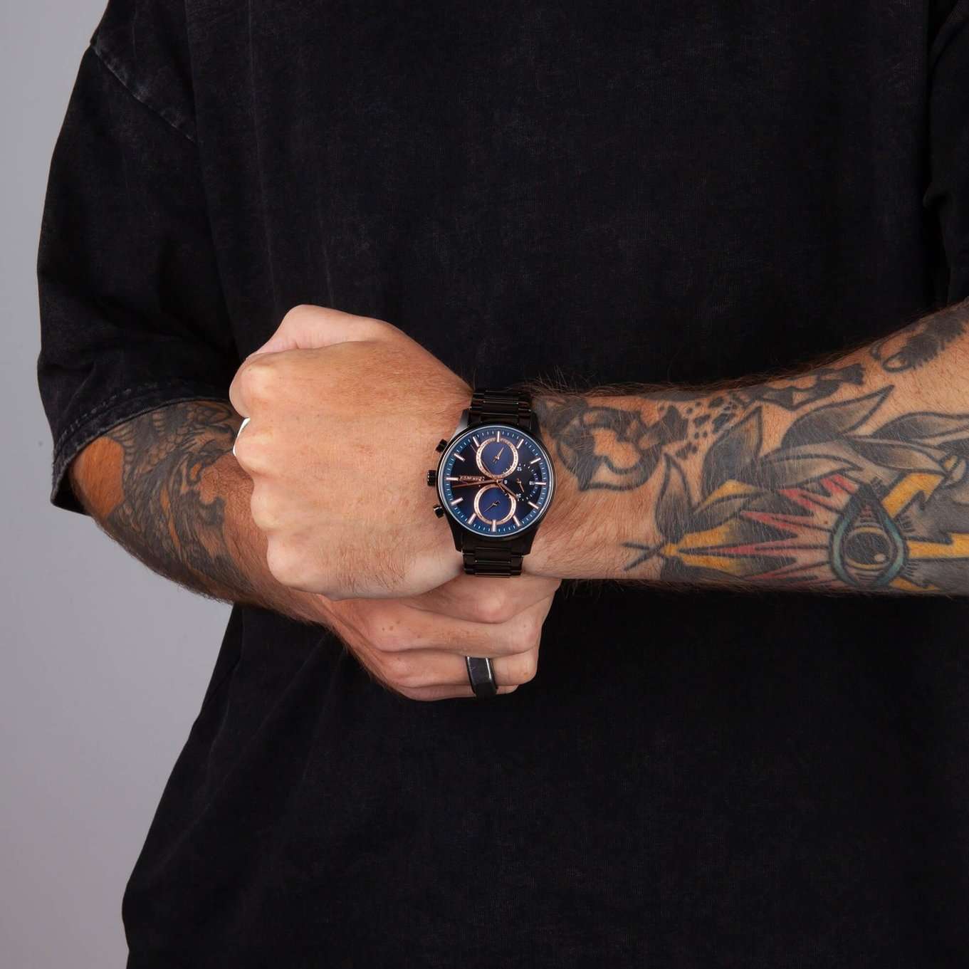 Часы Slazenger SL.09.2283.2.05 — это стильный и надежный аксессуар, который подчеркивает индивидуальность своего владельца. Корпус и браслет выполнены из прочного суперметалла с черным IP-покрытиемIP-покрытиеМетод ионного напыления. Демонстрирует повышенную устойчивость к истиранию, окислению и химическим веществам. Под воздействием высокого давления и температуры около 1500°C молекулы металла надёжно соединяются с частицами корпуса часов. — инновационного сплава на основе меди с пониженным содержанием цинка и никеля, дополненного специальным покрытием для долговечности и эстетики. Синий циферблат надежно защищен минеральным стекломМинеральное стеклоМинеральное стекло представляет собой искусственно выращенный минерал кварца. Такое стекло отличается особой устойчивостью к повреждениям и царапинам. Уступает по некоторым качествам сапфировому стеклу., устойчивым к царапинам и механическим повреждениям. Модель оснащена кварцевым механизмом, что гарантирует высокую точность хода. На отдельные циферблаты вынесены указатели 24-часового времени, даты и дня недели, что делает использование часов особенно удобным в повседневной жизни. Стальной браслет с раскладной застёжкойРаскладная застёжкаТакой тип застёжки используется только на браслетах из металла. Она никогда не раскрывается полностью, происходит разделение на 2 и более частей. Раскладывающая застёжка снизит вероятность потери часов к минимуму. обеспечивает комфортную посадку. Водозащита 5 АТМ позволяет не беспокоиться о случайных брызгах или дожде. Метки с люминесцентным покрытиемЛюминесцентное покрытиеПозволяет считывать показания времени в темноте. Производители наносят на стрелки, часовые индексы, безель или поверхность циферблата светонакопительный состав, дающий холодное свечение. удобно подсвечиваются в темноте после зарядки на свету. Диаметр корпуса составляет 43 мм, толщина — 13 мм, что обеспечивает комфортное ношение на запястье. Часы станут отличным выбором для повседневного использования или дополнения к деловому образу, а также послужат отличным подарком на любой праздник.