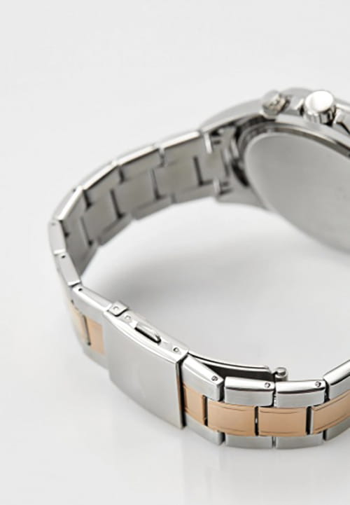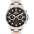 Мужские кварцевые часы Slazenger SL.09.2309.2.04 — это выразительный и функциональный аксессуар, сочетающий прочность, стиль и насыщенную комплектацию. Браслет выполнен из суперметалла с IP-покрытиемIP-покрытиеМетод ионного напыления. Демонстрирует повышенную устойчивость к истиранию, окислению и химическим веществам. Под воздействием высокого давления и температуры около 1500°C молекулы металла надёжно соединяются с частицами корпуса часов., защищён минеральным стекломМинеральное стеклоМинеральное стекло представляет собой искусственно выращенный минерал кварца. Такое стекло отличается особой устойчивостью к повреждениям и царапинам. Уступает по некоторым качествам сапфировому стеклу.. Циферблат чёрного цвета оформлен с вынесенными малыми циферблатами для индикации дня недели, даты и времени в 24-часовом формате. Стрелки и метки оснащены люминесцентным покрытиемЛюминесцентное покрытиеПозволяет считывать показания времени в темноте. Производители наносят на стрелки, часовые индексы, безель или поверхность циферблата светонакопительный состав, дающий холодное свечение., обеспечивающим хорошую читаемость в темноте. Заводная головка снабжена защитой, а задняя крышка — завинчивающаяся, что повышает надёжность конструкции. Браслет комбинированного цвета фиксируется на раскладной застёжкеРаскладная застёжкаТакой тип застёжки используется только на браслетах из металла. Она никогда не раскрывается полностью, происходит разделение на 2 и более частей. Раскладывающая застёжка снизит вероятность потери часов к минимуму., обеспечивая удобство и безопасность ношения. Водонепроницаемость 50 м позволяет использовать часы в повседневных условиях, защищая от случайных брызг и капель дождя. Модель подчёркивает индивидуальность владельца и идеально подходит как для повседневного, так и для делового образа.