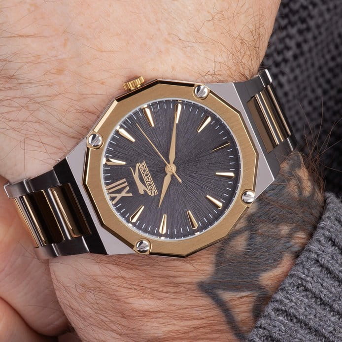 Мужские кварцевые часы Slazenger SL.09.2375.1.02 – идеальное сочетание классического дизайна и современных технологий, созданное для уверенных в себе мужчин. Корпус выполнен из суперметалла серебристого цвета, диаметром 41 мм и толщиной 8 мм, подчёркивает надежность модели и делает их идеальным аксессуаром для любой ситуации – будь то деловая встреча или повседневные выходы. Циферблат надёжно защищён минеральным стекломМинеральное стеклоМинеральное стекло представляет собой искусственно выращенный минерал кварца. Такое стекло отличается особой устойчивостью к повреждениям и царапинам. Уступает по некоторым качествам сапфировому стеклу., которое устойчиво к механическим повреждениям и сохраняет кристальную прозрачность. Неподвижный безельБезельВнешний ободок, закрепляющий стекло. В спортивных часах так называется поворотное кольцо с делениями на циферблате, выполняет роль таймера – замеряет отрезки времени на шкале. Неподвижный безель – элемент декора. Однонаправленно вращающийся безель на дайверских часах позволяет фиксировать моменты погружения и выныривания на поверхность. с IP-покрытиемIP-покрытиеМетод ионного напыления. Демонстрирует повышенную устойчивость к истиранию, окислению и химическим веществам. Под воздействием высокого давления и температуры около 1500°C молекулы металла надёжно соединяются с частицами корпуса часов. золотистого цвета. Стальной браслет с частичным IP-покрытиемIP-покрытиеМетод ионного напыления. Демонстрирует повышенную устойчивость к истиранию, окислению и химическим веществам. Под воздействием высокого давления и температуры около 1500°C молекулы металла надёжно соединяются с частицами корпуса часов. удобно облегает запястье и фиксируется с помощью раскладной застёжкиРаскладная застёжкаТакой тип застёжки используется только на браслетах из металла. Она никогда не раскрывается полностью, происходит разделение на 2 и более частей. Раскладывающая застёжка снизит вероятность потери часов к минимуму., обеспечивая надёжность и комфорт в повседневном ношении. Эти часы станут не просто аксессуаром, а надежным спутником в любой ситуации, подчеркивая ваш безупречный вкус и деловой стиль. Водозащита 50 метров позволит защитить корпус от случайных брызг или капель дождя.