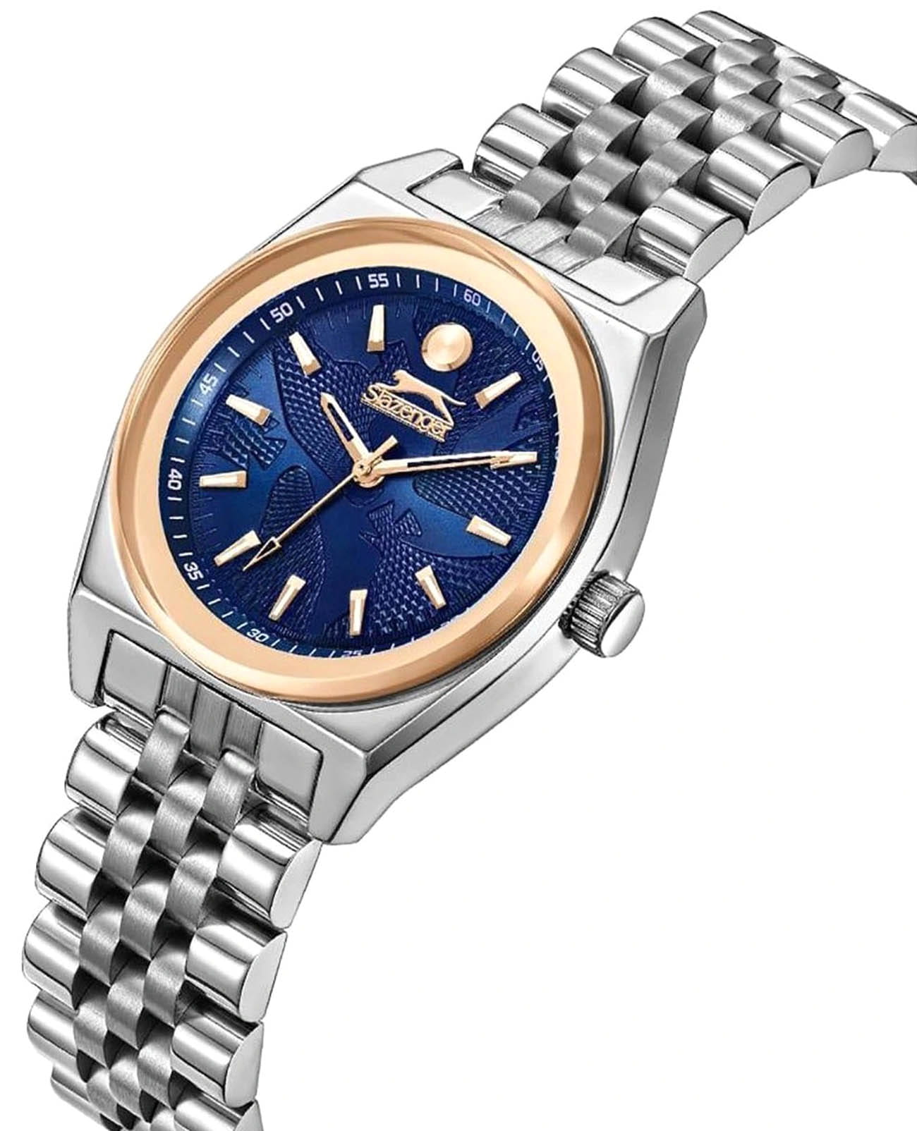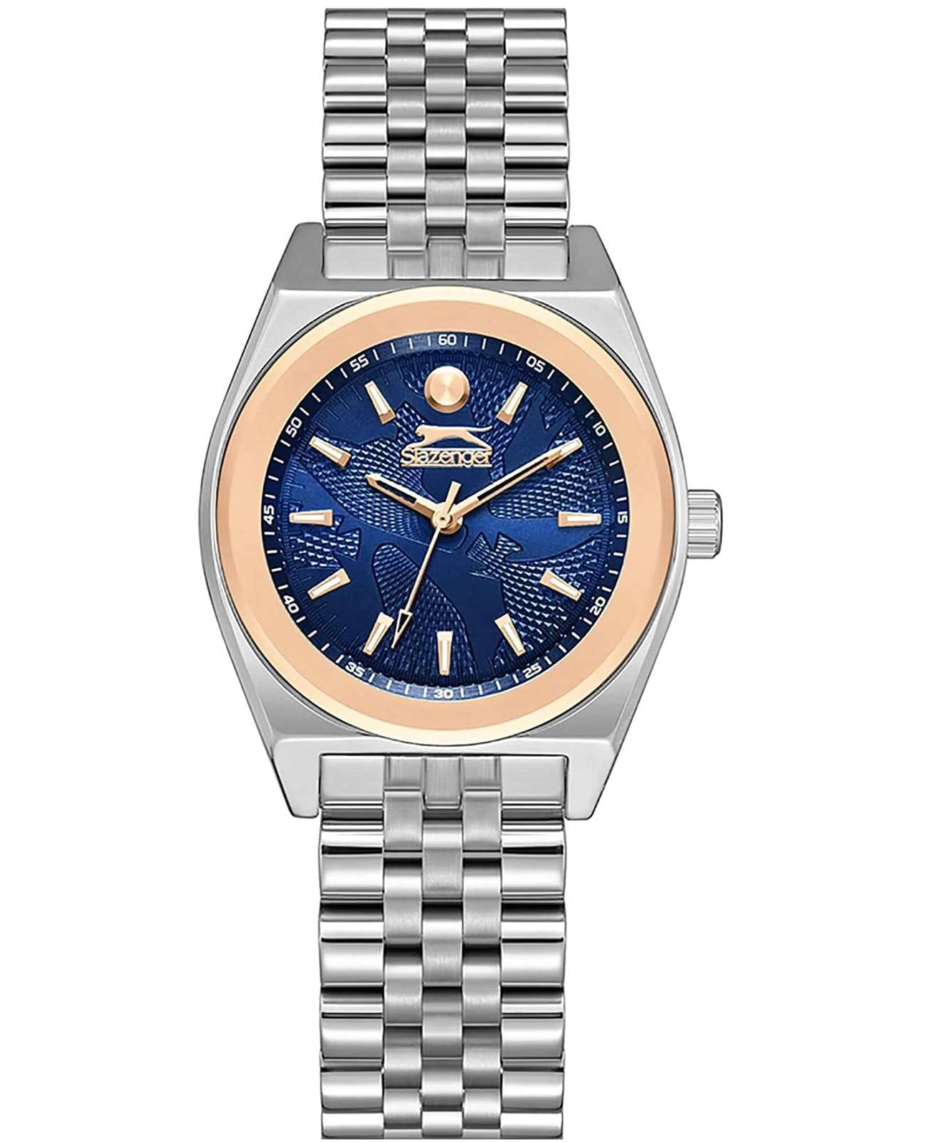 Женские кварцевые часы Slazenger — это элегантный аксессуар, сочетающий стиль и надёжность. Корпус диаметром 32 мм и толщиной 9 мм выполнен из суперметалла с IP-покрытиемIP-покрытиеМетод ионного напыления. Демонстрирует повышенную устойчивость к истиранию, окислению и химическим веществам. Под воздействием высокого давления и температуры около 1500°C молекулы металла надёжно соединяются с частицами корпуса часов.. Циферблат синего цвета защищён минеральным стекломМинеральное стеклоМинеральное стекло представляет собой искусственно выращенный минерал кварца. Такое стекло отличается особой устойчивостью к повреждениям и царапинам. Уступает по некоторым качествам сапфировому стеклу.. Механизм — кварцевый калибр VJ21C1. Часы оснащены браслетом из суперметалла с раскладной застёжкойРаскладная застёжкаТакой тип застёжки используется только на браслетах из металла. Она никогда не раскрывается полностью, происходит разделение на 2 и более частей. Раскладывающая застёжка снизит вероятность потери часов к минимуму.. Водонепроницаемость 30 м позволяет использовать часы в повседневных условиях. Гарантия — 12 месяцев. Идеальный выбор для тех, кто ценит классический дизайн и качество.