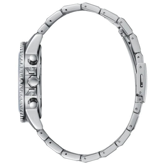Мужские кварцевые часы Slazenger — это выразительный и функциональный аксессуар. Корпус диаметром 44 мм и толщиной 13 мм выполнен из суперметалла. БезельБезельВнешний ободок, закрепляющий стекло. В спортивных часах так называется поворотное кольцо с делениями на циферблате, выполняет роль таймера – замеряет отрезки времени на шкале. Неподвижный безель – элемент декора. Однонаправленно вращающийся безель на дайверских часах позволяет фиксировать моменты погружения и выныривания на поверхность. из суперметалла с IP-покрытиемIP-покрытиеМетод ионного напыления. Демонстрирует повышенную устойчивость к истиранию, окислению и химическим веществам. Под воздействием высокого давления и температуры около 1500°C молекулы металла надёжно соединяются с частицами корпуса часов.. Циферблат серого цвета оформлен индексами и стрелками. Циферблат защищён минеральным стекломМинеральное стеклоМинеральное стекло представляет собой искусственно выращенный минерал кварца. Такое стекло отличается особой устойчивостью к повреждениям и царапинам. Уступает по некоторым качествам сапфировому стеклу.. Механизм — кварцевый калибр. Часы оснащены индикацией дня недели, даты и 12/24-часового формата времени. Окошко даты расположено между 4 и 5 часами. Часы оснащены браслетом из суперметалла с раскладной застёжкойРаскладная застёжкаТакой тип застёжки используется только на браслетах из металла. Она никогда не раскрывается полностью, происходит разделение на 2 и более частей. Раскладывающая застёжка снизит вероятность потери часов к минимуму.. Водонепроницаемость 100 м позволяет использовать часы для плавания и повседневного ношения. Гарантия — 12 месяцев. Идеальный выбор для тех, кто ценит стиль, функциональность и качество.