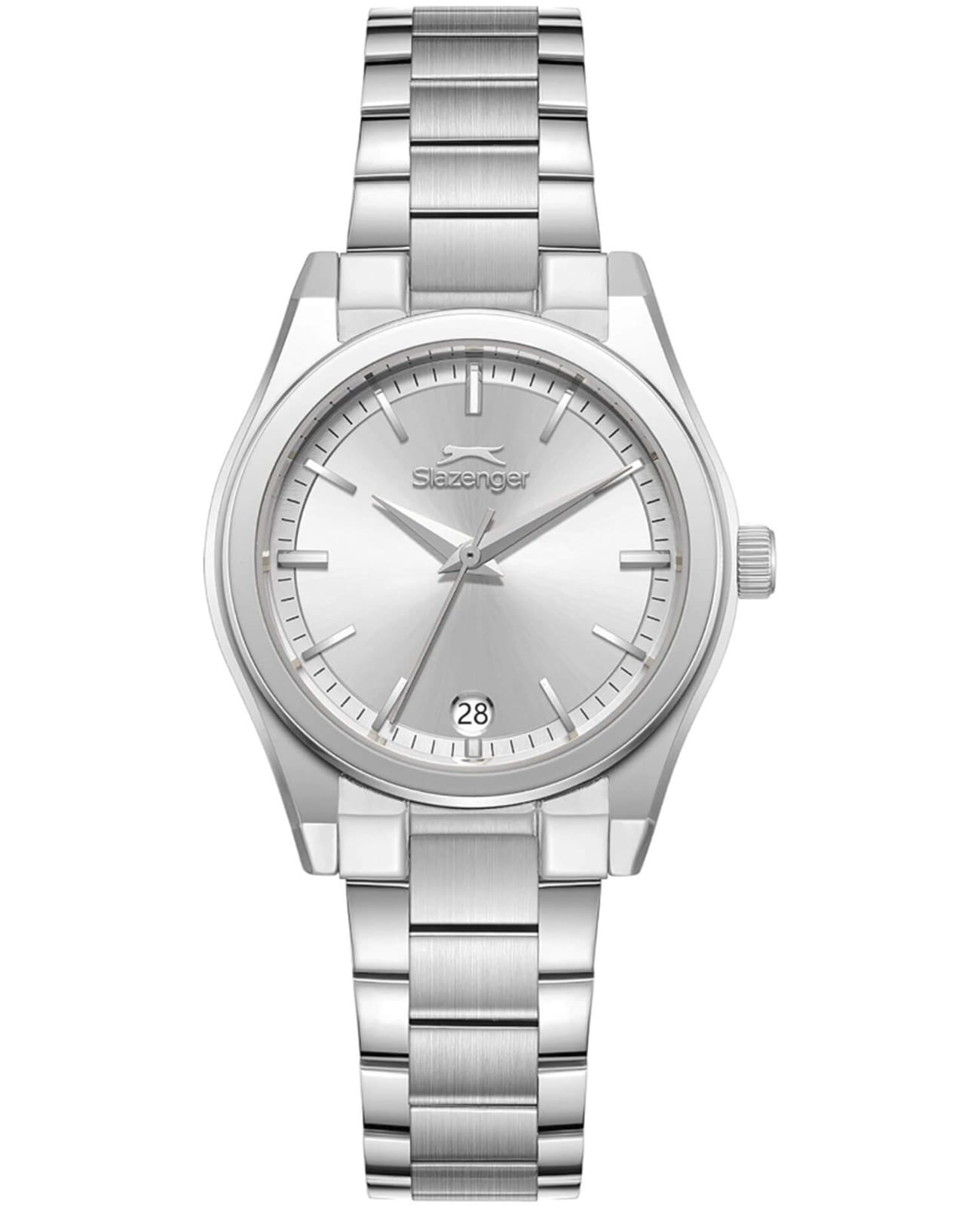 Женские кварцевые часы Slazenger — это элегантный аксессуар. Корпус диаметром 32 мм и толщиной 8 мм выполнен из суперметалла. Циферблат серебристого цвета оформлен индексами и стрелками. Циферблат защищён минеральным стекломМинеральное стеклоМинеральное стекло представляет собой искусственно выращенный минерал кварца. Такое стекло отличается особой устойчивостью к повреждениям и царапинам. Уступает по некоторым качествам сапфировому стеклу.. Механизм — кварцевый. Окошко даты расположено в положении 6 часов. Часы оснащены браслетом из суперметалла на застёжке «бабочка» с кнопкамиЗастёжка "бабочка"Такой вид застёжки дополняется предохранителями, помогающими избежать случайного раскрытия браслета. Обладают изящным исполнением. . Водонепроницаемость 50 м позволяет использовать часы в повседневных условиях. Гарантия — 12 месяцев. Идеальный выбор для тех, кто ценит стиль и качество.