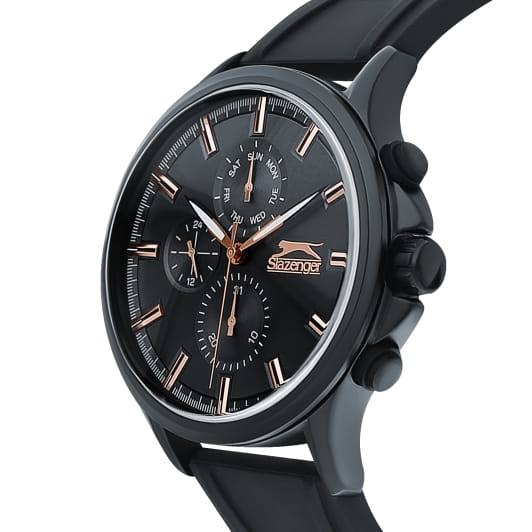 Мужские кварцевые часы Slazenger — это выразительный и функциональный аксессуар. Корпус диаметром 47 мм и толщиной 15 мм выполнен из суперметалла с IP-покрытиемIP-покрытиеМетод ионного напыления. Демонстрирует повышенную устойчивость к истиранию, окислению и химическим веществам. Под воздействием высокого давления и температуры около 1500°C молекулы металла надёжно соединяются с частицами корпуса часов.. Циферблат чёрного цвета оформлен индексами, стрелками и тремя вынесенными субциферблатами: для отображения дня недели, даты и 24-часового формата времени. Стрелки с люминесцентным покрытиемЛюминесцентное покрытиеПозволяет считывать показания времени в темноте. Производители наносят на стрелки, часовые индексы, безель или поверхность циферблата светонакопительный состав, дающий холодное свечение., обеспечивающим читаемость в темноте. Циферблат защищён минеральным стекломМинеральное стеклоМинеральное стекло представляет собой искусственно выращенный минерал кварца. Такое стекло отличается особой устойчивостью к повреждениям и царапинам. Уступает по некоторым качествам сапфировому стеклу.. Часы оснащены силиконовым ремешком на классической пряжке. Водонепроницаемость 50 м позволяет использовать часы в повседневных условиях. Идеальный выбор для тех, кто ценит стиль и качество.