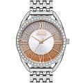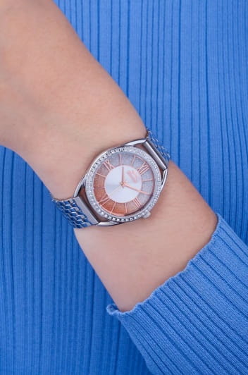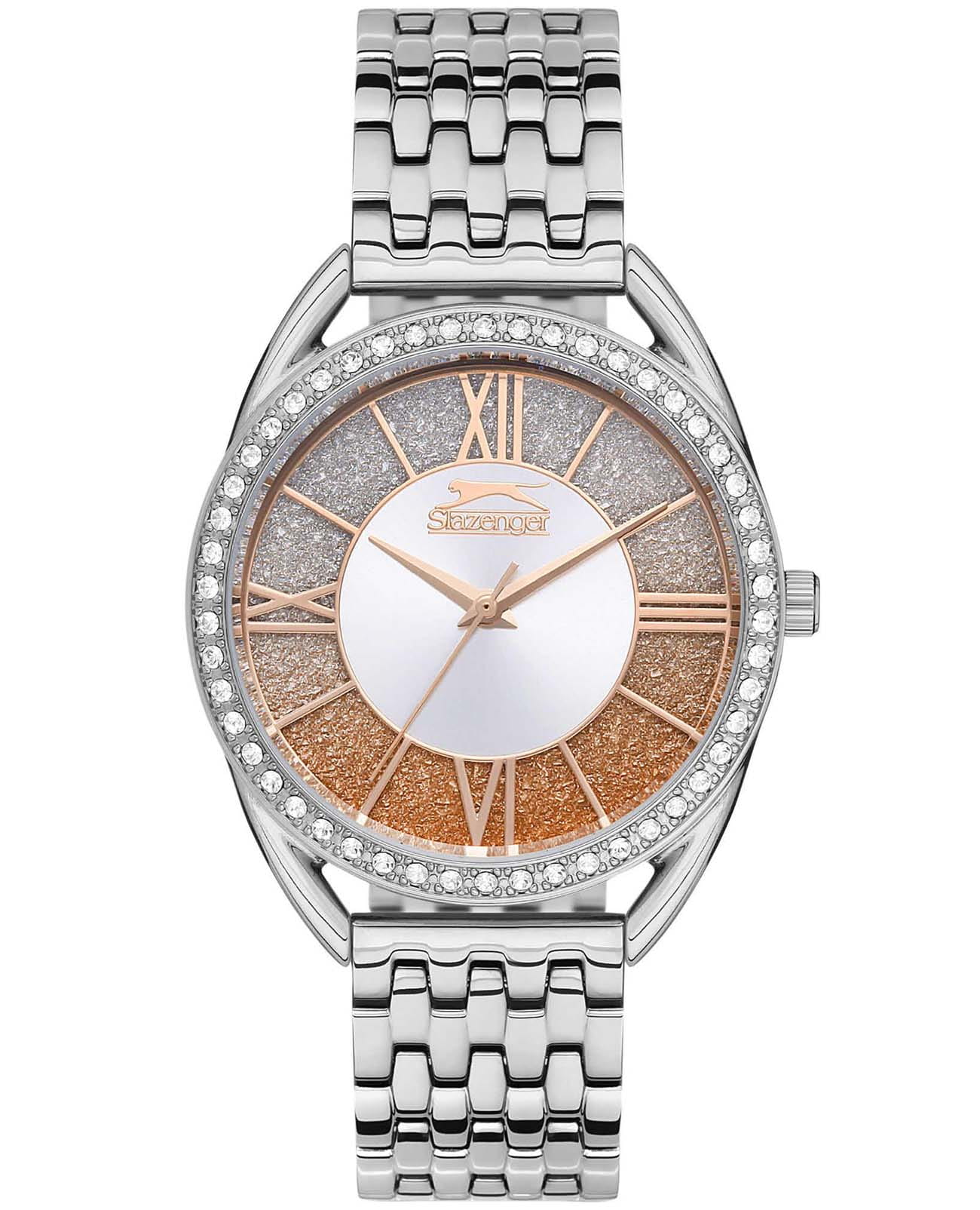 Женские кварцевые часы Slazenger SL.09.6537.3.01 – это сочетание элегантности, современного стиля и надёжности. Изящный корпус из суперметалла серебристого цвета, диаметром 35 мм и толщиной 9 мм, подчёркивает утончённость модели и делает их идеальным аксессуаром для любой ситуации – будь то деловая встреча, романтический вечер или повседневные выходы. Циферблат надёжно защищён минеральным стекломМинеральное стеклоМинеральное стекло представляет собой искусственно выращенный минерал кварца. Такое стекло отличается особой устойчивостью к повреждениям и царапинам. Уступает по некоторым качествам сапфировому стеклу., которое устойчиво к механическим повреждениям и сохраняет кристальную прозрачность. БезельБезельВнешний ободок, закрепляющий стекло. В спортивных часах так называется поворотное кольцо с делениями на циферблате, выполняет роль таймера – замеряет отрезки времени на шкале. Неподвижный безель – элемент декора. Однонаправленно вращающийся безель на дайверских часах позволяет фиксировать моменты погружения и выныривания на поверхность. украшен фианитами. Браслет из суперметалла удобно облегает запястье и фиксируется с помощью раскладной застёжкиРаскладная застёжкаТакой тип застёжки используется только на браслетах из металла. Она никогда не раскрывается полностью, происходит разделение на 2 и более частей. Раскладывающая застёжка снизит вероятность потери часов к минимуму., обеспечивая надёжность и комфорт в повседневном ношении. Утончённый стиль, внимание к деталям и практичность делают эту модель идеальным выбором для современных женщин, ценящих эстетику и функциональность. Водозащита до 30 метров позволит защитить корпус от случайных брызг или капель дождя.